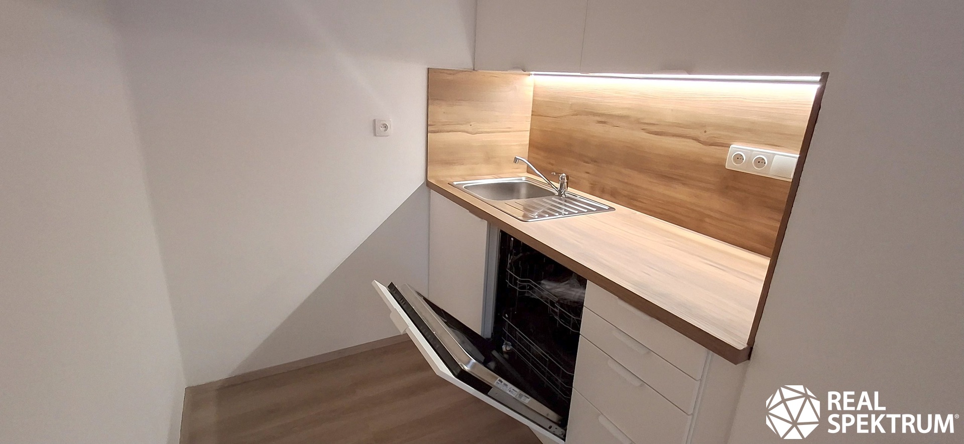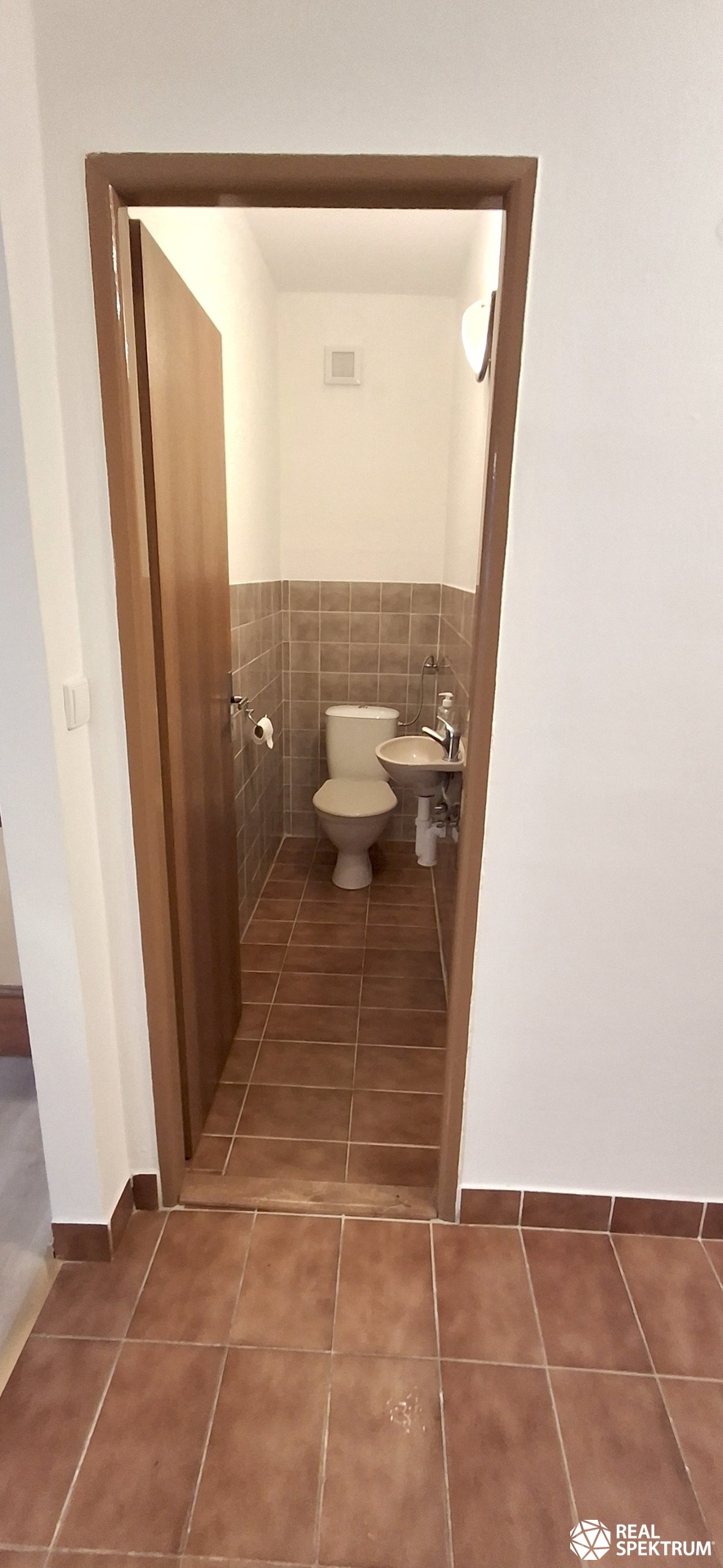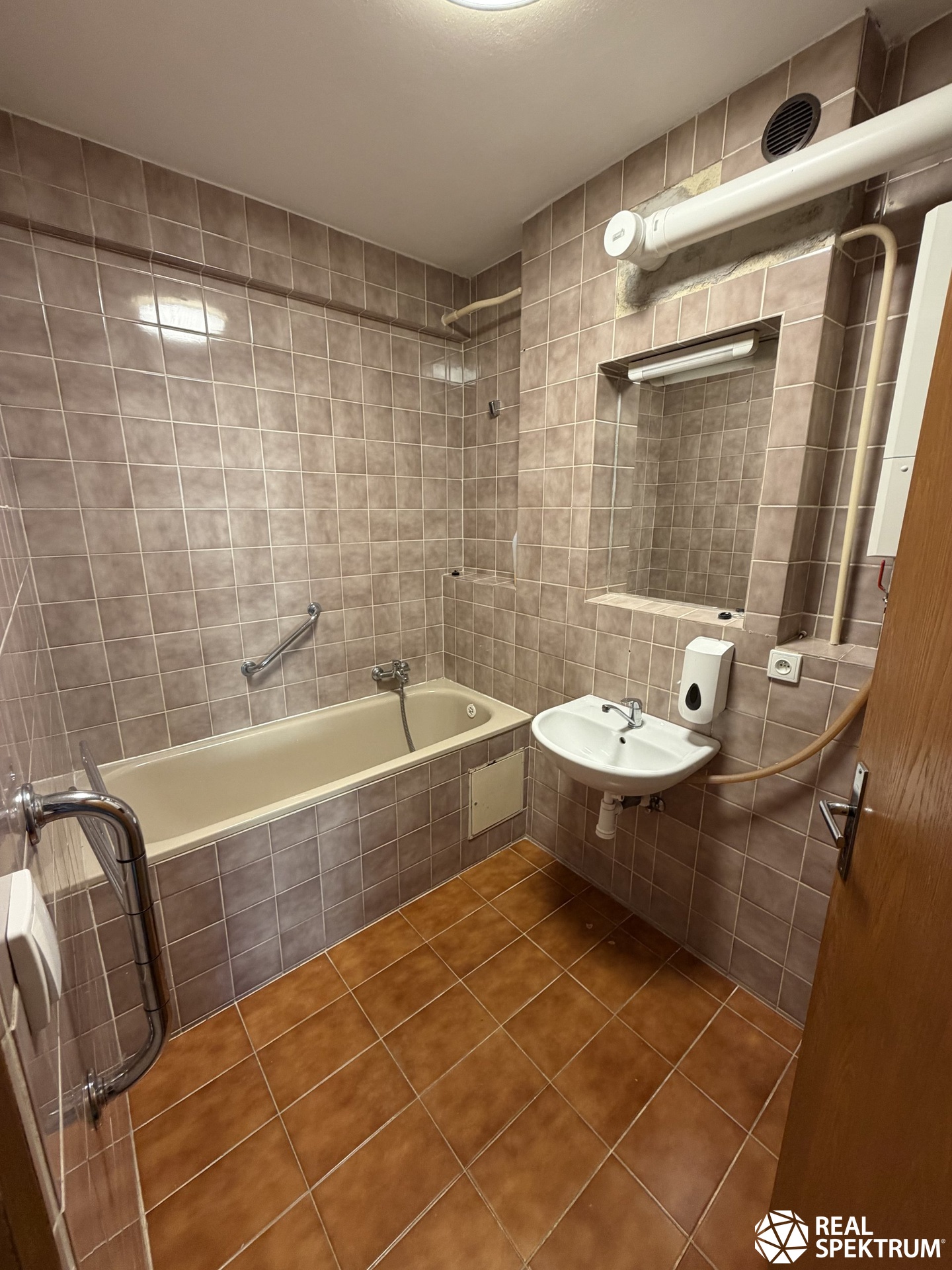 V bytě najdete koupelnu s vanou a umyvadlem, v každém podlaží je WC s umyvadlem. Kuchyň je vybavená novou kuchyňskou linkou s dřezem s baterií, indukční varnou deskou, troubou a velkou myčkou. Vytápění a ohřev vody zajištuje kondenzační plynový kotel umístěný v koupelně.