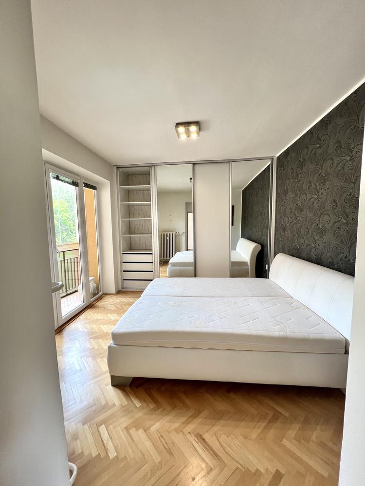 Vybavení bytu: kuchyňská linka se spotřebiči, pračka, velká sedací souprava, nábytková stěna v obývacím pokoji, v ložnici manželská postel a velké vestavěné skříně. Orientace bytu je na východ a západ. K bytu náleží sklepní kóje.