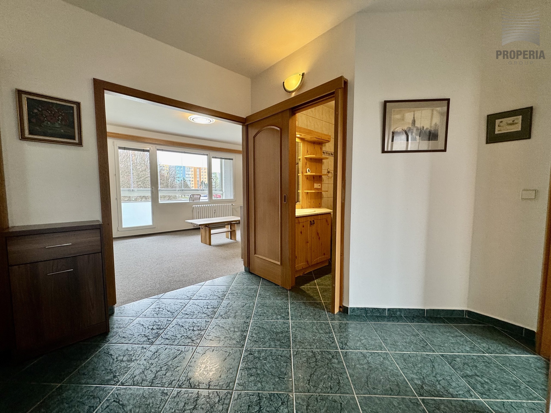 Dispoziční řešení poskytuje neprůchozí pokoje i prostornou předsíň s vestavěnými skříněmi. K dispozici je sklep. Výhodou je klidné bydlení s výhledem do zeleně a volného prostoru, výborná občanská vybavenost (škola, školka, gymnázium, dětské hřiště, supermarket atd.), blízkost zastávky MHD.