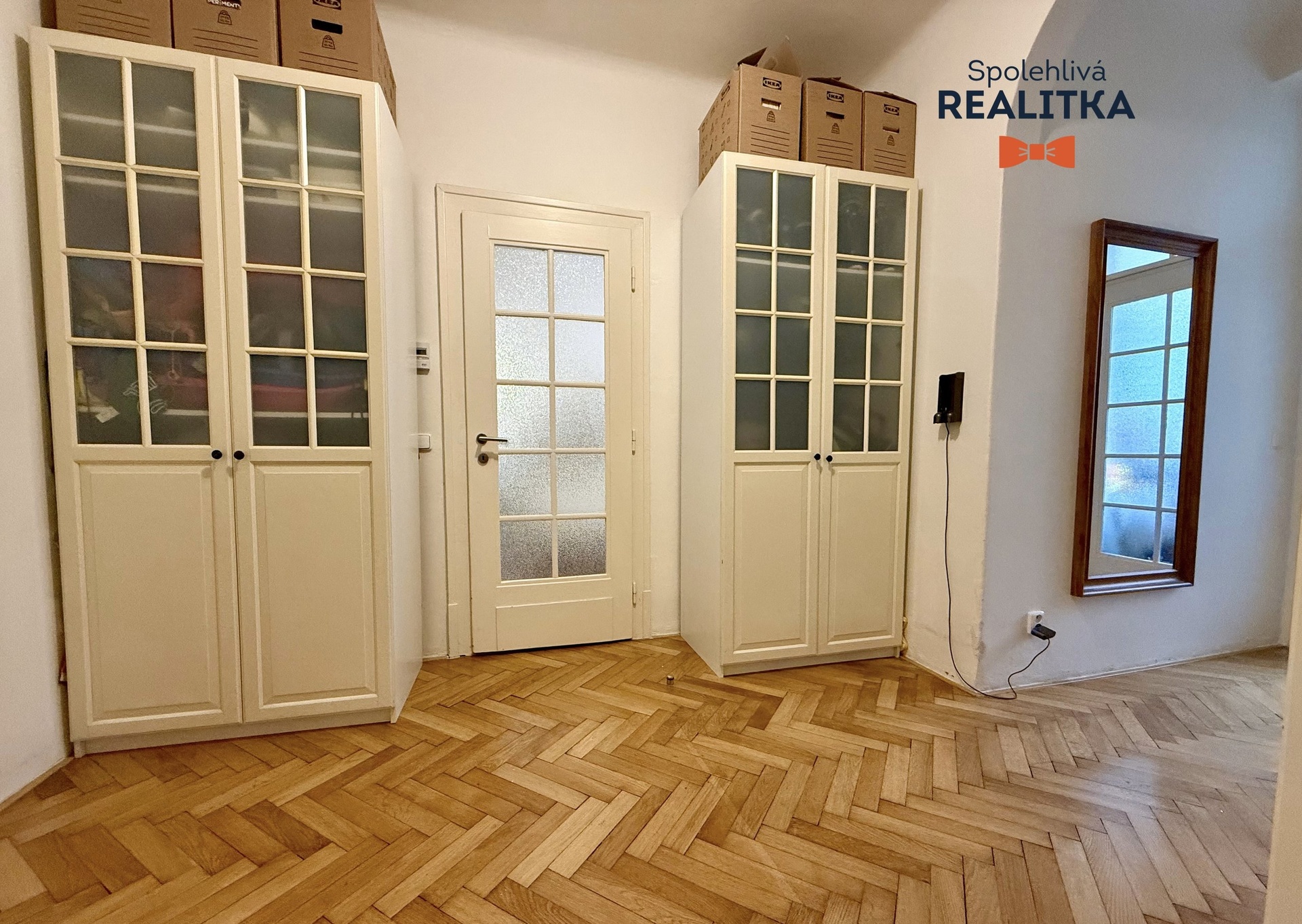Úložné prostory: Součástí bytu jsou vestavěné skříně, které v bytě zůstávají. K bytu náleží nadstandardně velký sklep (8 m²).