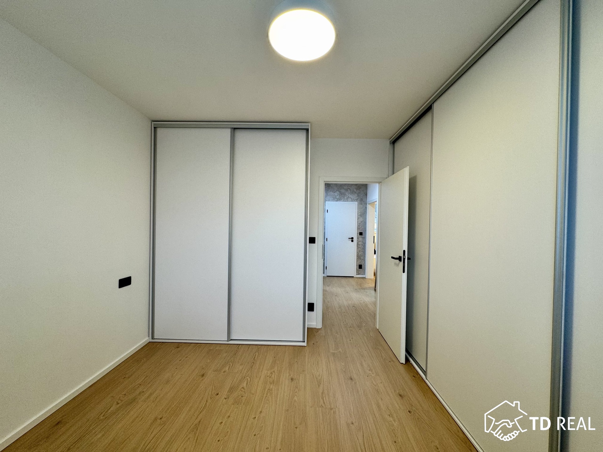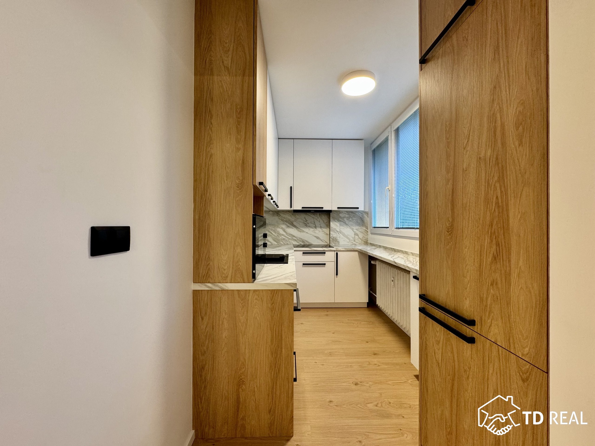 Dispozice: vstupní předsíň se vstupy koupelny, toaleta je zvlášť, vstup do obývacího pokoje (18m²) na který navazuje kuchyně. Dále je k dispozici ložnice (13m²), prostorná šatna a dětský pokoj (18m²). Z dětského pokoje je vstup na lodžii. Byt prošel aktuálně nákladnou rekonstrukcí.