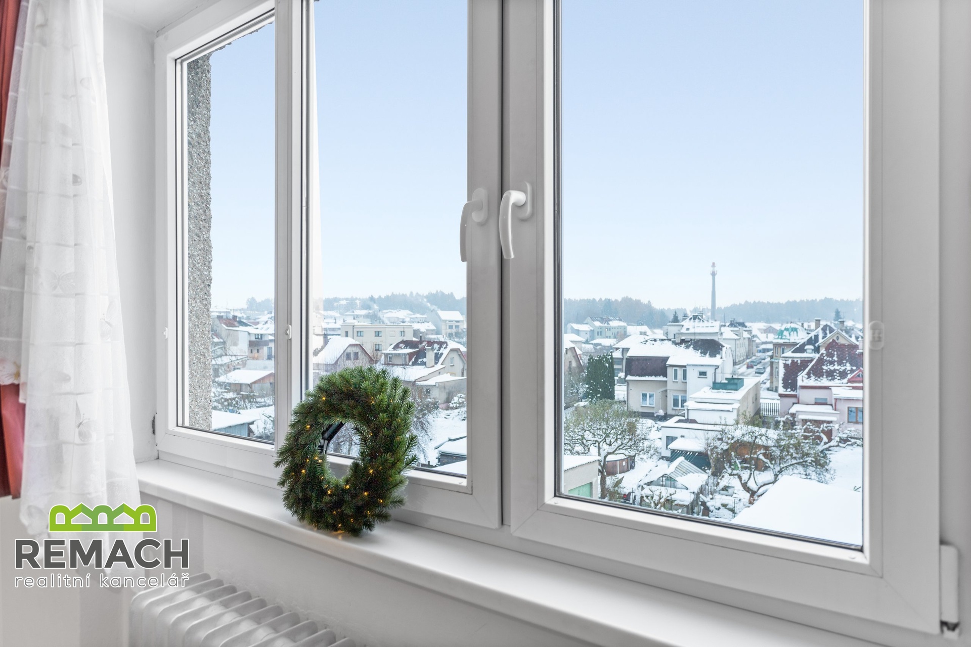 Z chodby se dostanete do prostorného obývací místností s vestavnými skříněmi a velkými okny.