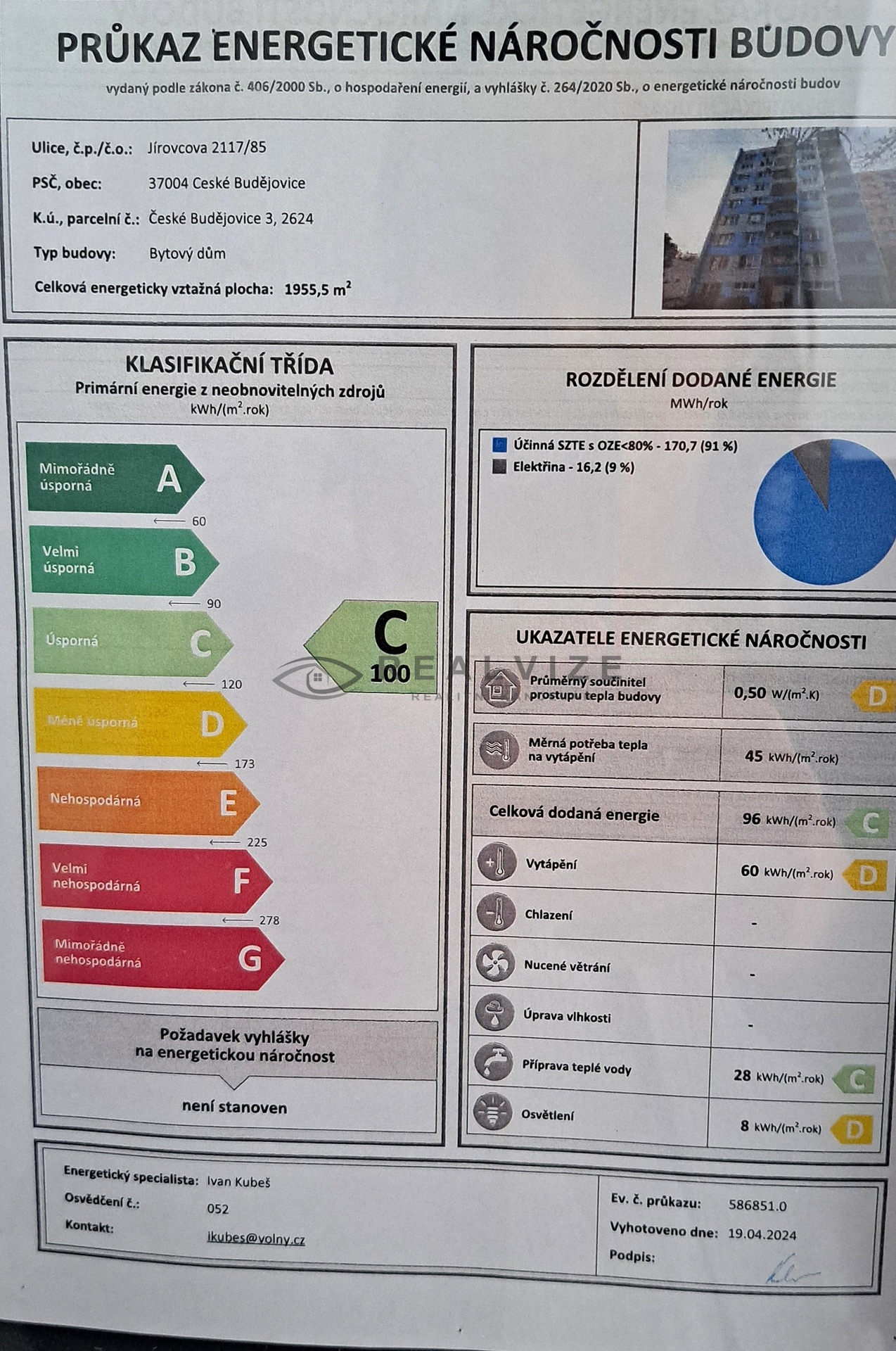 Nabízíme k pronájmu plně zařízený byt 3 + 1 o celkové výměře 68 m2 v 6. poschodí panelového bytového domu v ulici Jírovcova v Č. Budějovicích. Byt je kompletně zařízen nábytkem, kuchyňská linka se spotřebiči (plynový sporák s el. troubou, mikrovlnná trouba, kávovar, digestoř, lednice s mrazákem). Lodžie (2 m2) do vnitrobloku. V bytě je zděná koupelna se sprchovým koutem a umyvadlem, pračkou. Samostatná toaleta. Sklep (2 m2) a kolárna k dispozici. Měsíční platby: nájemné 16.000 Kč, zálohy na služby 4.000 Kč (voda, topení, elektřina), internet - nájemce vlastní smlouva. Vratná jistota 32.000 Kč, provize RK 19.360 Kč. Majitel preferuje pronájem pro max. 4 osoby. K dispozici ihned.