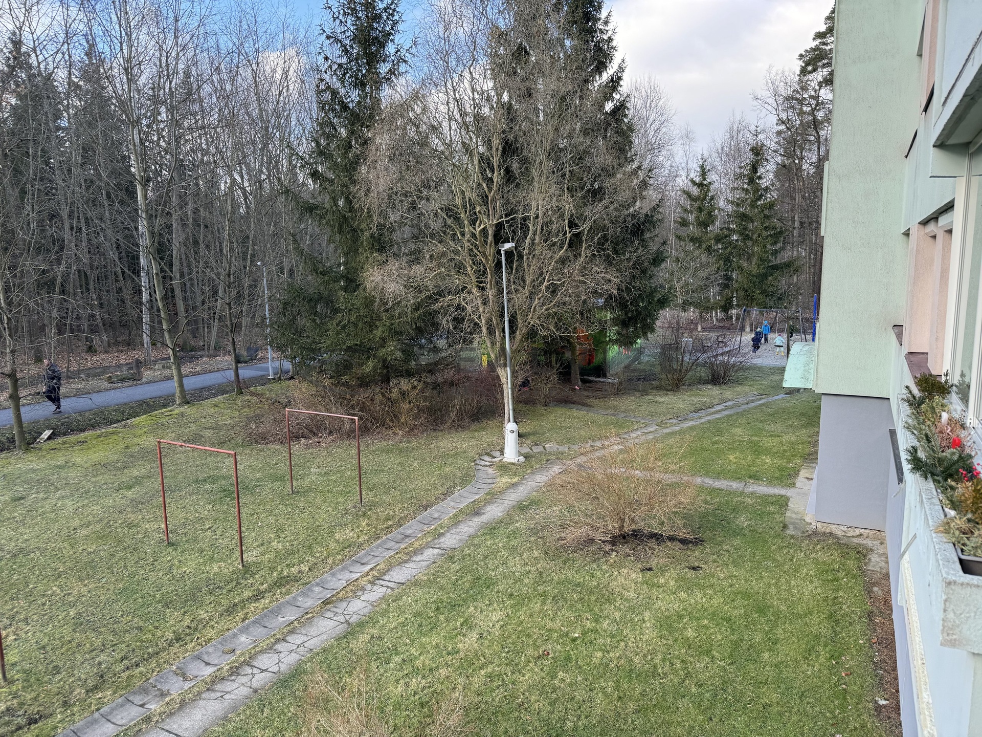 Byt je v 1. patře, sousedí se 3 dalšími byty. Má hezkou lodžii s výhledem do zeleně a na pěší stezku. V sousedství domu najdete dětské hřiště. V dosahu je MHD, obchody, MŠ...