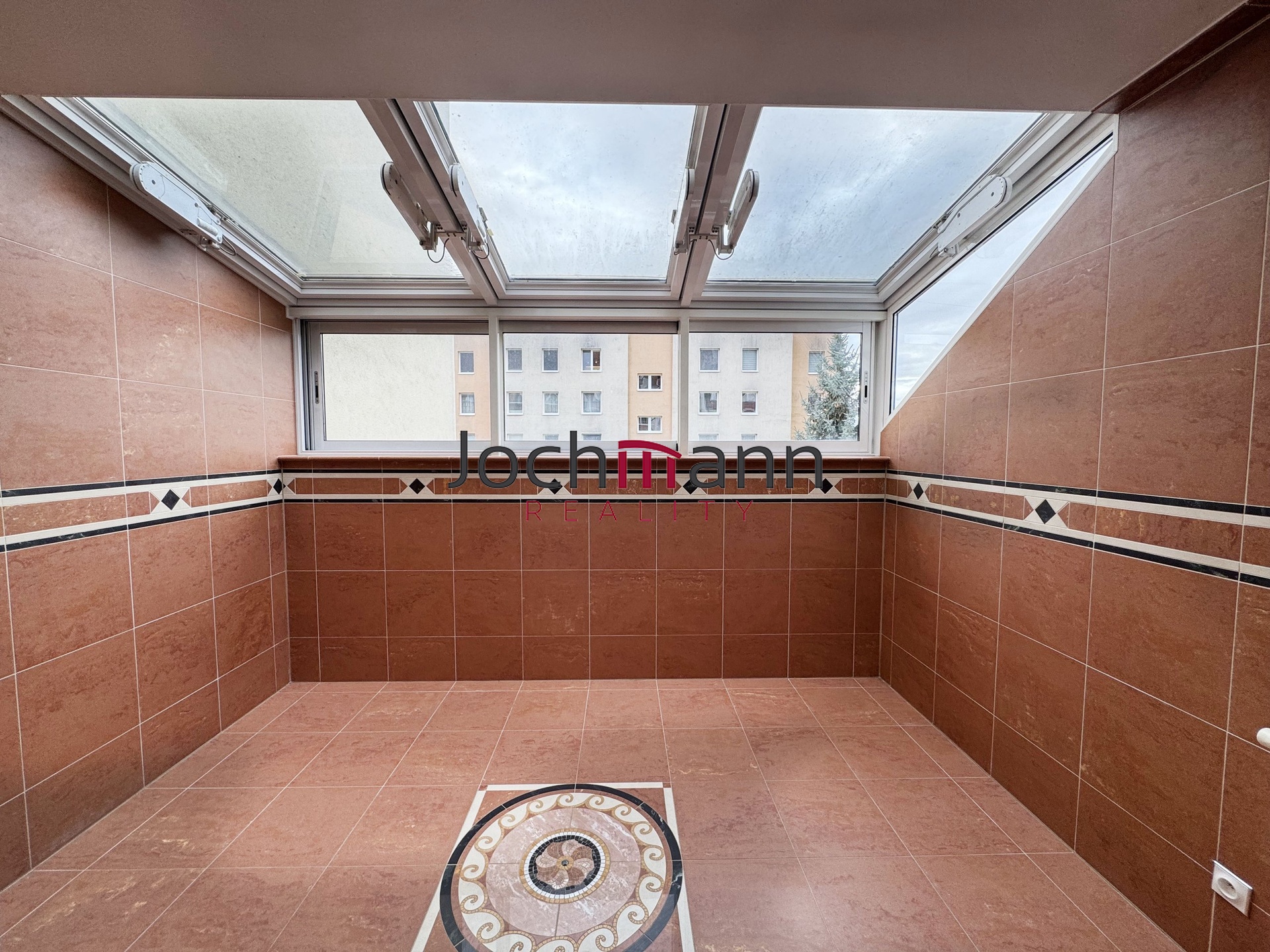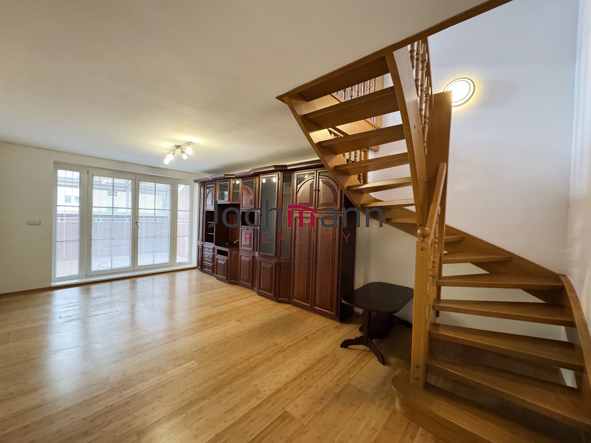 Velmi prostorný mezonetový byt v centru města se zasklenou lodžií a terasou nabízí ve své dispozici kuchyň s jídelním koutem (kuchyňská linka vybavena vestavěným sporákem, varnou deskou, mikrovlnou troubou, lednicí s mrazákem), hlavní obývací místnost se vstupem do zasklené lodžie, samostatnou toaletu a šatnu/technickou místnost.