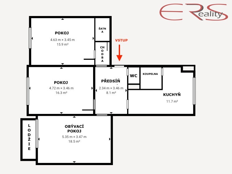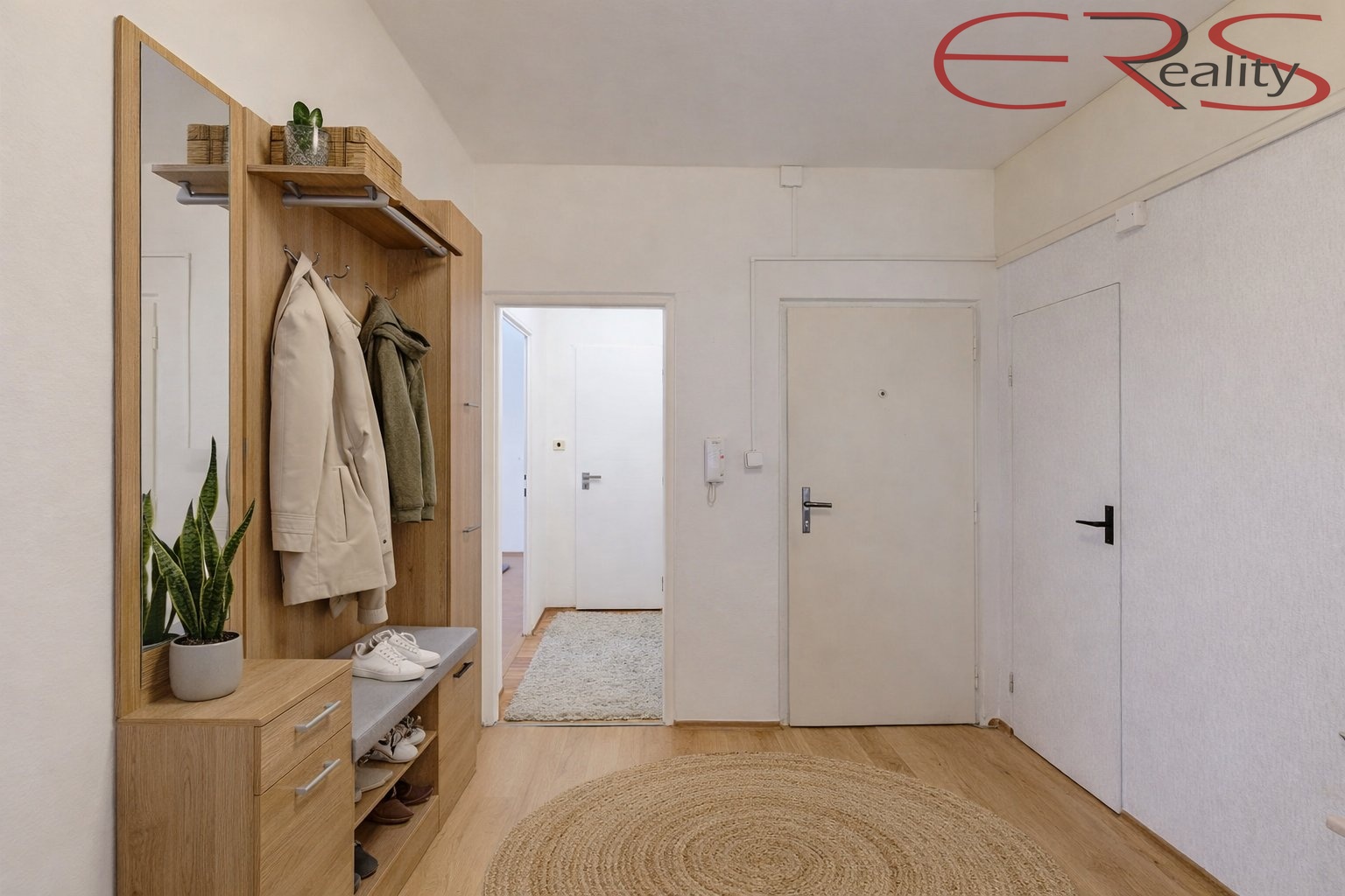 Dispozice je poctivá a dává smysl i lidem, kteří neradi žijí v kuchyni: samostatná kuchyň (cca 11,7 m²) s místem na jídelní stůl, kde se dá opravdu jíst, ne jen hrát „tetris s talíři“. K tomu tři plnohodnotné pokoje: obývací pokoj má cca 18,5 m² a vede na lodžii, takže ranní káva může probíhat důstojně a ne vestoje u otevřeného okna. Další dva pokoje mají cca 16,3 m² a 15,9 m², takže si vyberete, jestli chcete ložnici, dětský pokoj, pracovnu nebo „pokoj na všechno, co nechci řešit“. Praktický bonus je zázemí, které vám ušetří nervy: koupelna s vanou, samostatné WC, velkorysá předsíň (cca 8,1 m²) a navíc šatna/úložný prostor, protože život není minimalistický, jen se tak občas tváří na Instagramu.