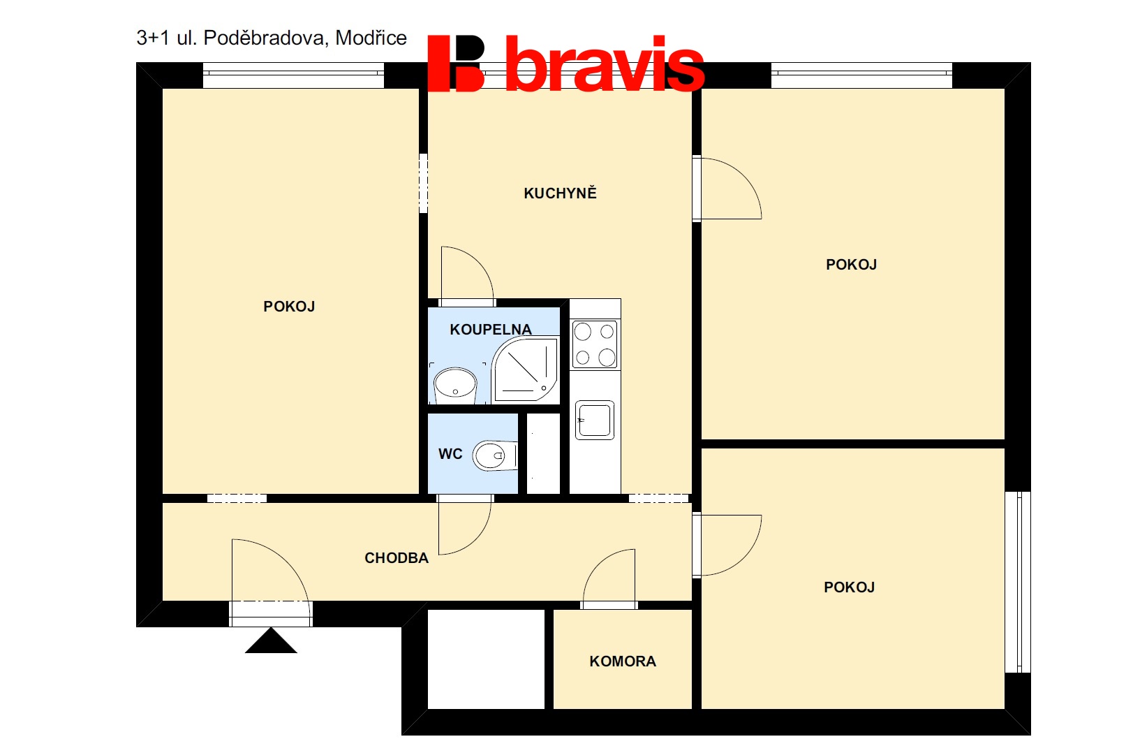 Ve výhradním zastoupení majitele nabízíme pronájem bytu 3+1 v Modřicích u Brna na ul. Poděbradova.