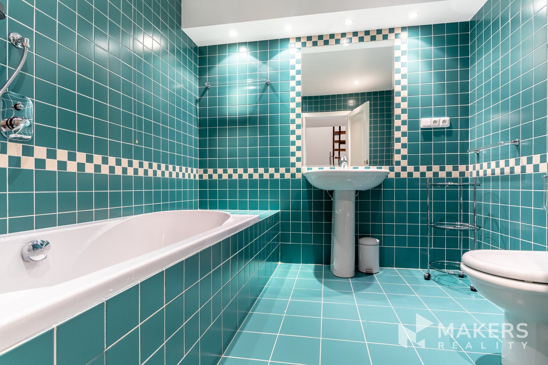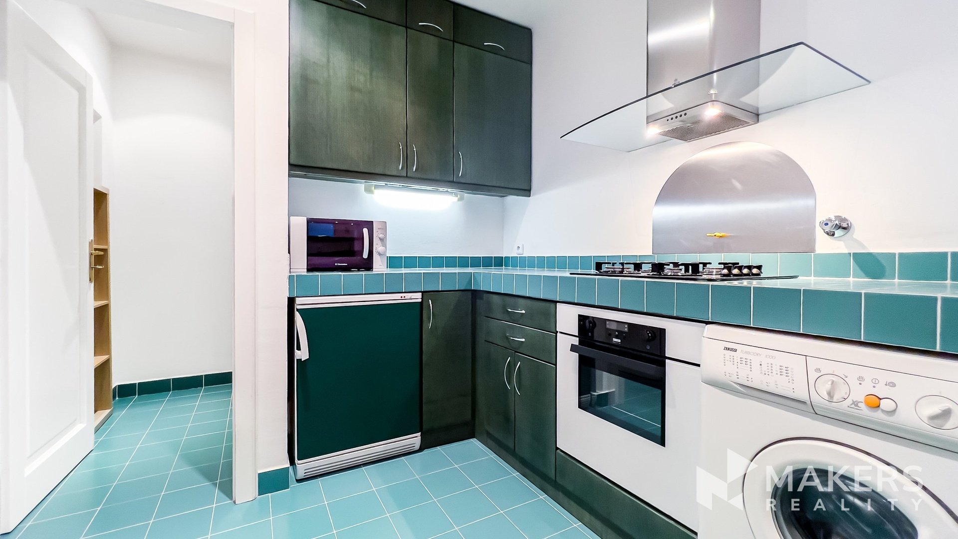 Na prvním podlaží se nachází vstupní hala, prostorný obývací pokoj s jídelním koutem, který je vybaven TV, satelitem a DVD přehrávačem, dále malý balkón, plně zařízená kuchyň otevřená do obývacího pokoje, ložnice s dvoulůžkem a vestavěnou skříní, koupelna se sprchou a dvě komory. Druhé podlaží nabízí halu, další ložnici s dvoulůžkem a vestavěnou skříní a koupelnu s vanou. Styl bytu zdůrazňuje pohodlí a estetiku, interiér doplňují orientální koberce a kvalitní zařízení.