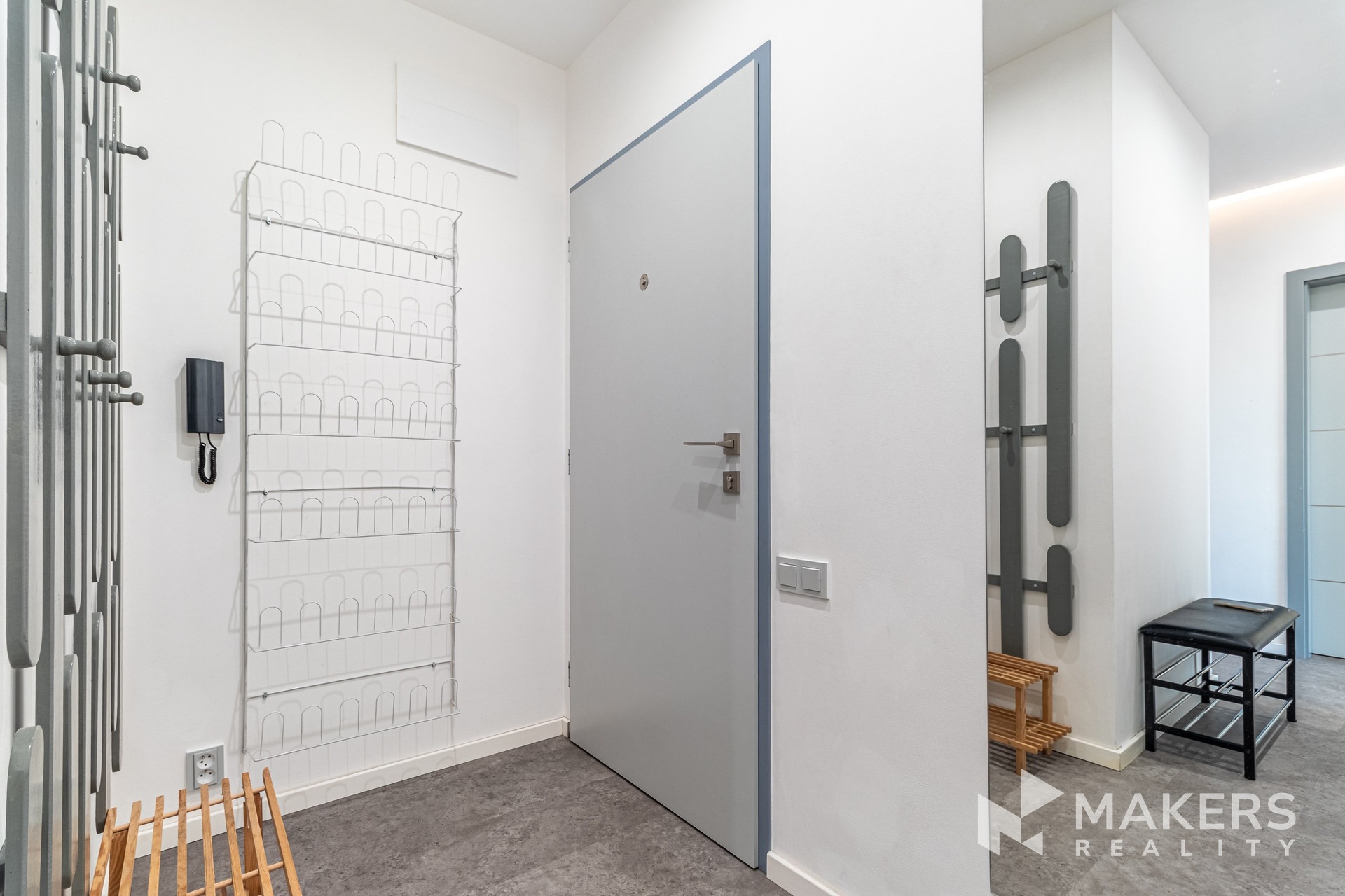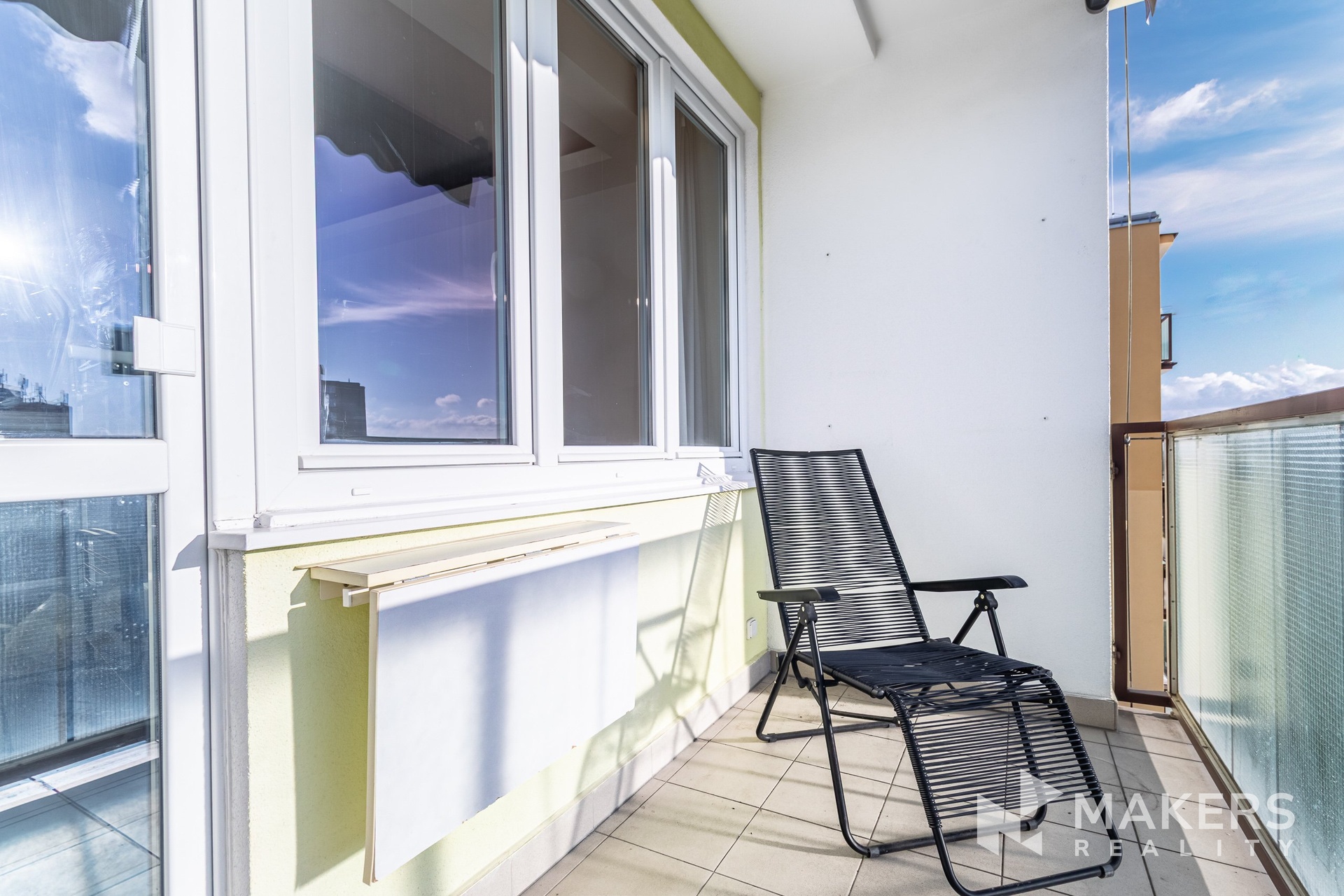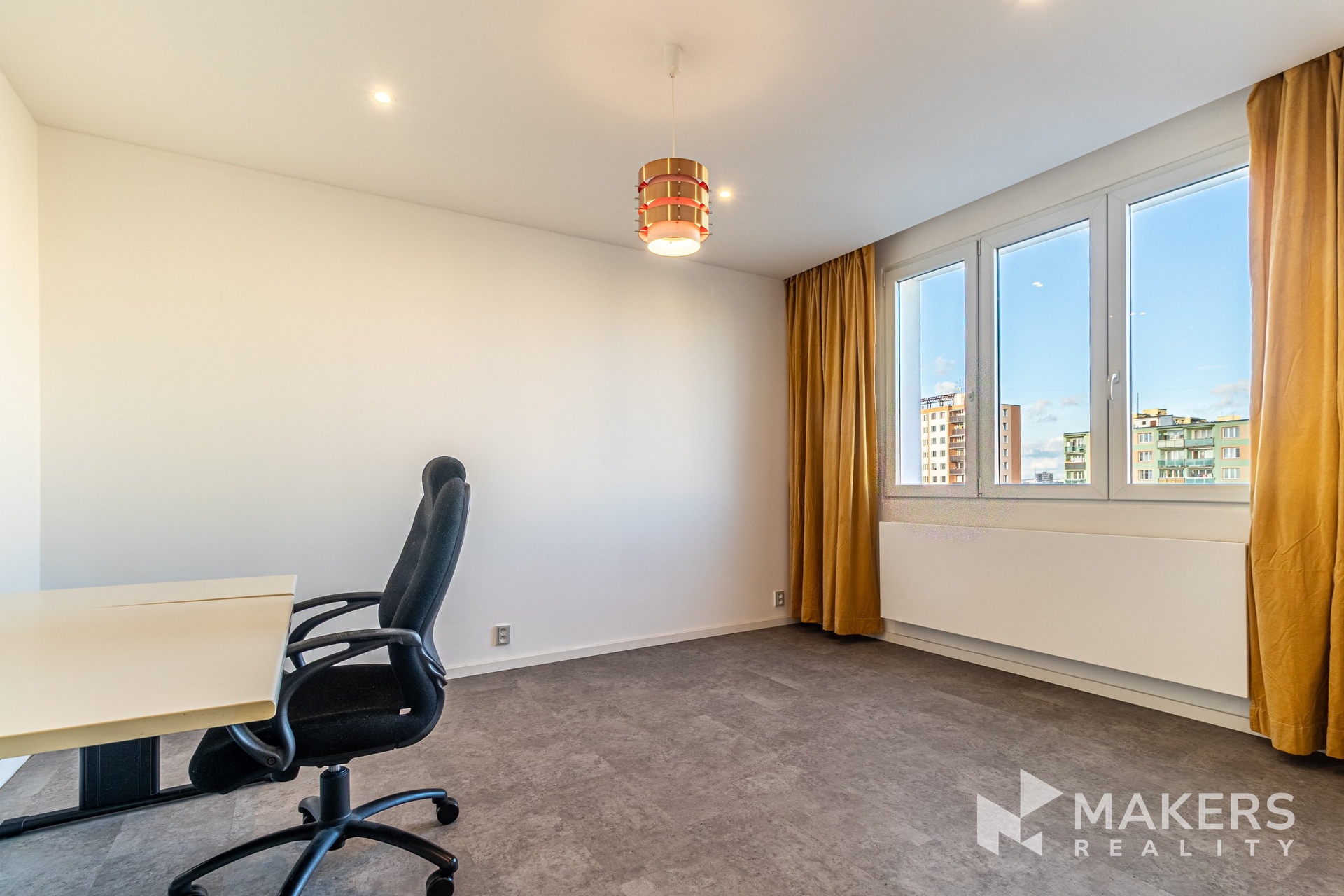 Dispozice nabízí prostorný obývací pokoj se západně orientovanou lodžií, která je ideálním místem pro večerní relaxaci. Součástí je nová sedací souprava s elektrickým výsuvem. Hlavní ložnice disponuje vlastní walk-in šatnou a postelí, druhý pokoj orientovaný na severovýchod může sloužit jako další ložnice, dětský pokoj nebo pracovna — ideální řešení i pro práci z domova.