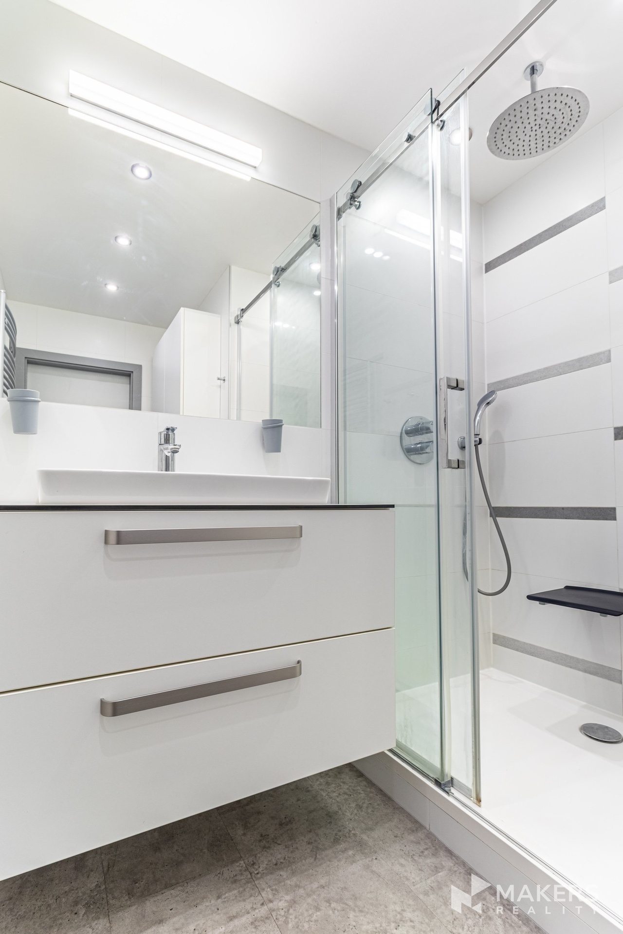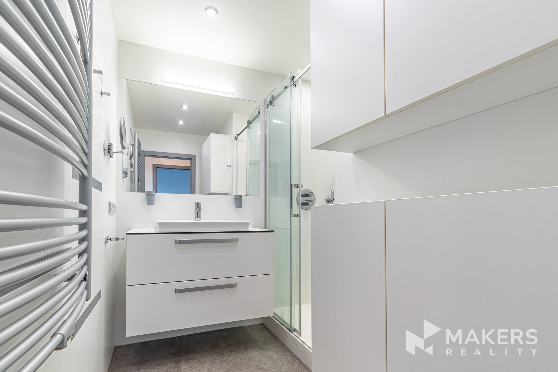 Samostatná kuchyně je plně vybavena lakovanou kuchyňskou linkou a vestavnými spotřebiči značky Whirlpool včetně myčky nádobí. K dispozici je prostorná koupelna, oddělené WC, nadstandardně velká komora a množství praktických úložných řešení.
