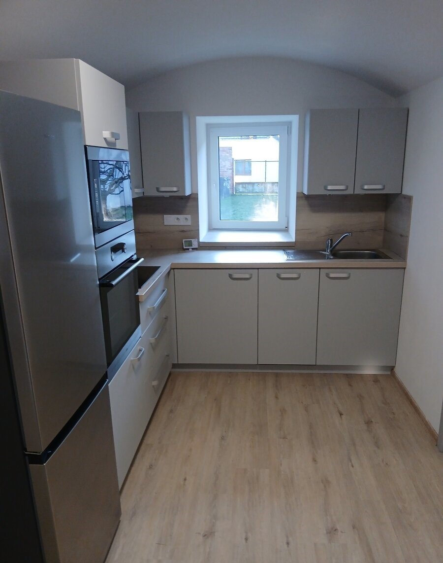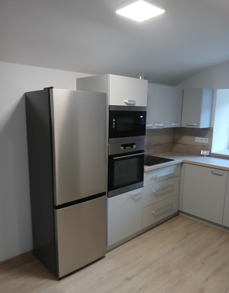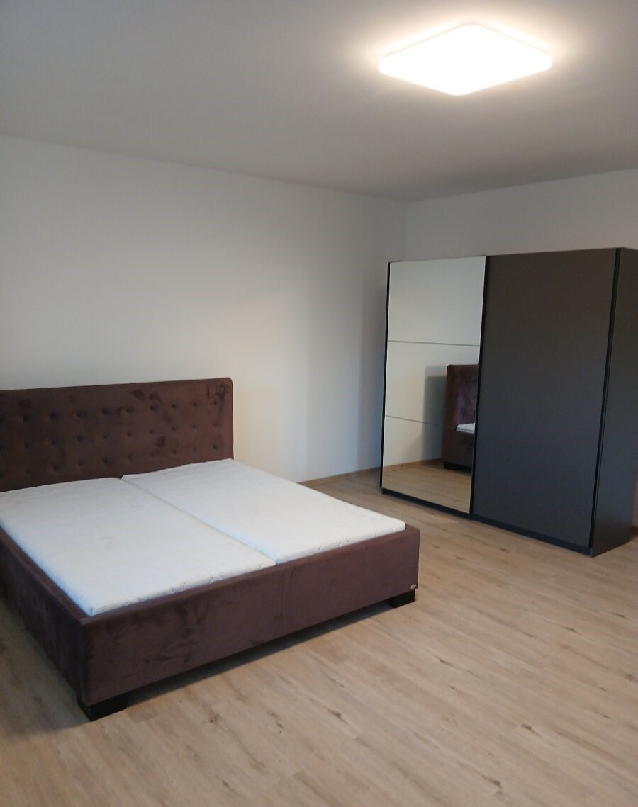 Dispozice: Vstupní chodba, kuchyně se spotřebiči včetně myčky a ledničky s mrazákem, obývák s jídelním stolem, obývací stěnou a pohovkou, ložnice s manželskou postelí a velkou šatní skříní, pokoj, koupelna s wc a sprchovým koutem.