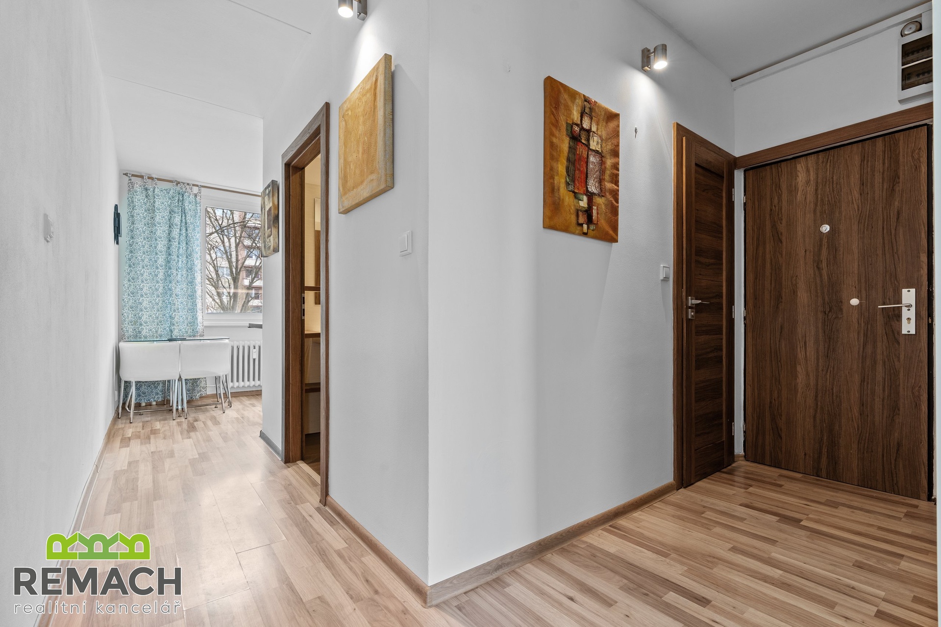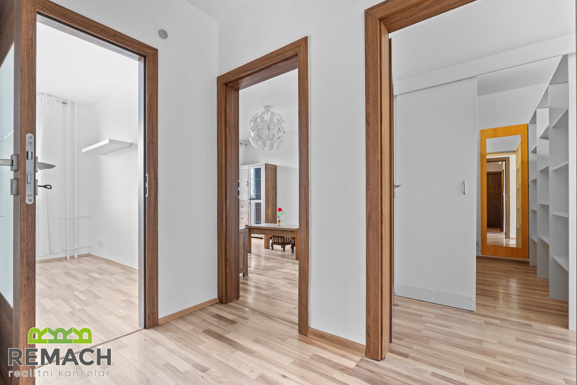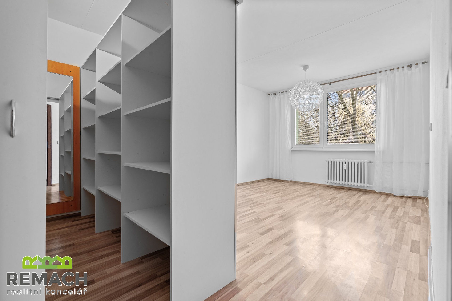 Ze vstupní chodby, kde je úložný prostor a vstup na samostatnou toaletu, máte dále vstupy do všech ostatních místností. Tam, kde má většina sousedů pokojík, je nyní obývací pokoj, protože vám nabídne vstup na balkon s výhledem na aquapark a zimní stadion, navíc, západní strana, tedy příjemné odpolední sluníčko. A tam, kde je běžně obývací pokoj, je nyní ložnice, která je přepažená příčkou a vytváří tak prostor pro super šatnu.