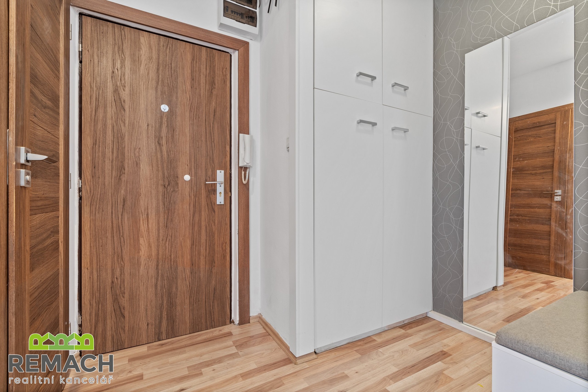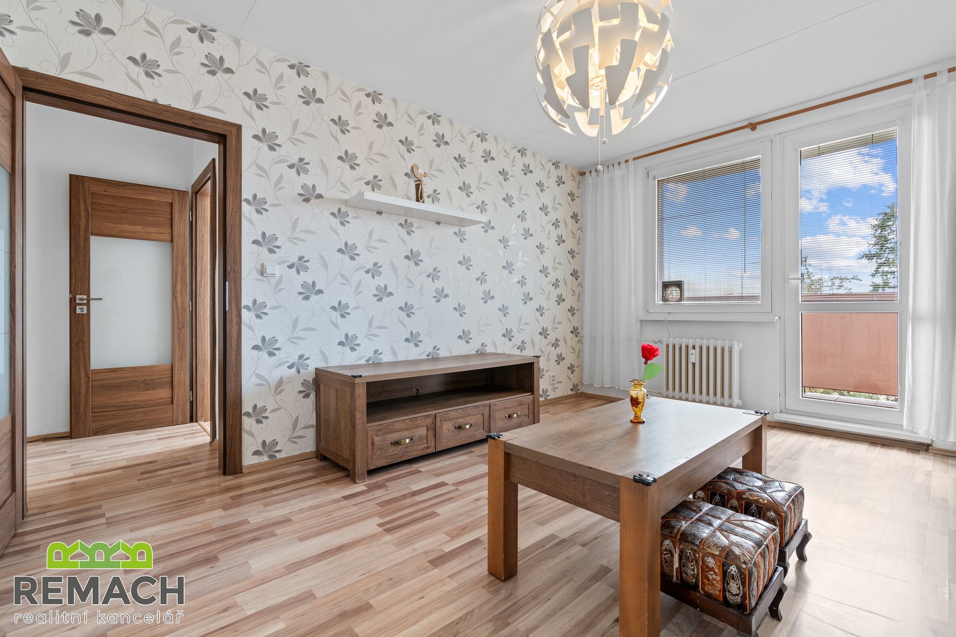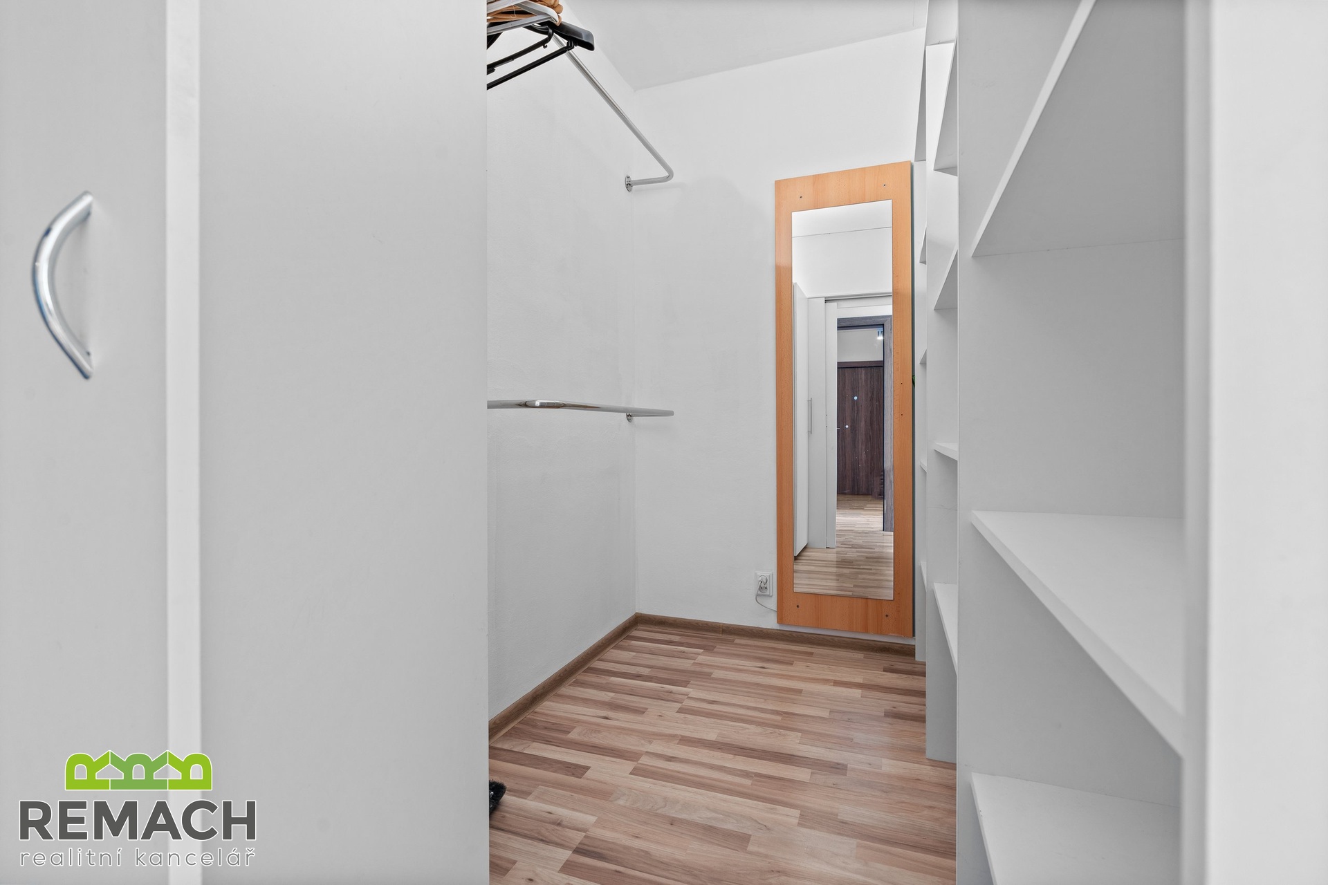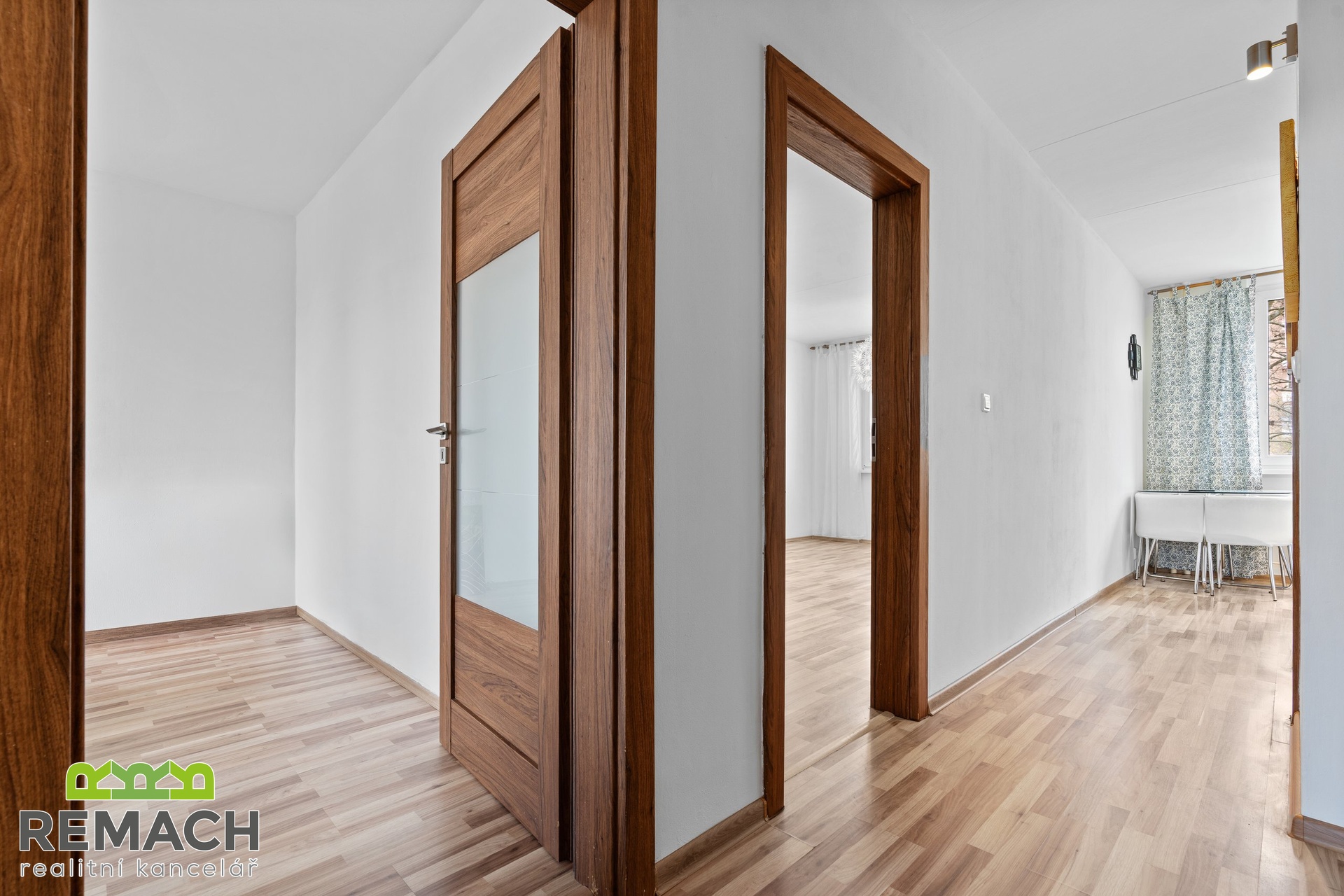 Ze vstupní chodby, kde je úložný prostor a vstup na samostatnou toaletu, máte dále vstupy do všech ostatních místností. Tam, kde má většina sousedů pokojík, je nyní obývací pokoj, protože vám nabídne vstup na balkon s výhledem na aquapark a zimní stadion, navíc, západní strana, tedy příjemné odpolední sluníčko. A tam, kde je běžně obývací pokoj, je nyní ložnice, která je přepažená příčkou a vytváří tak prostor pro super šatnu.