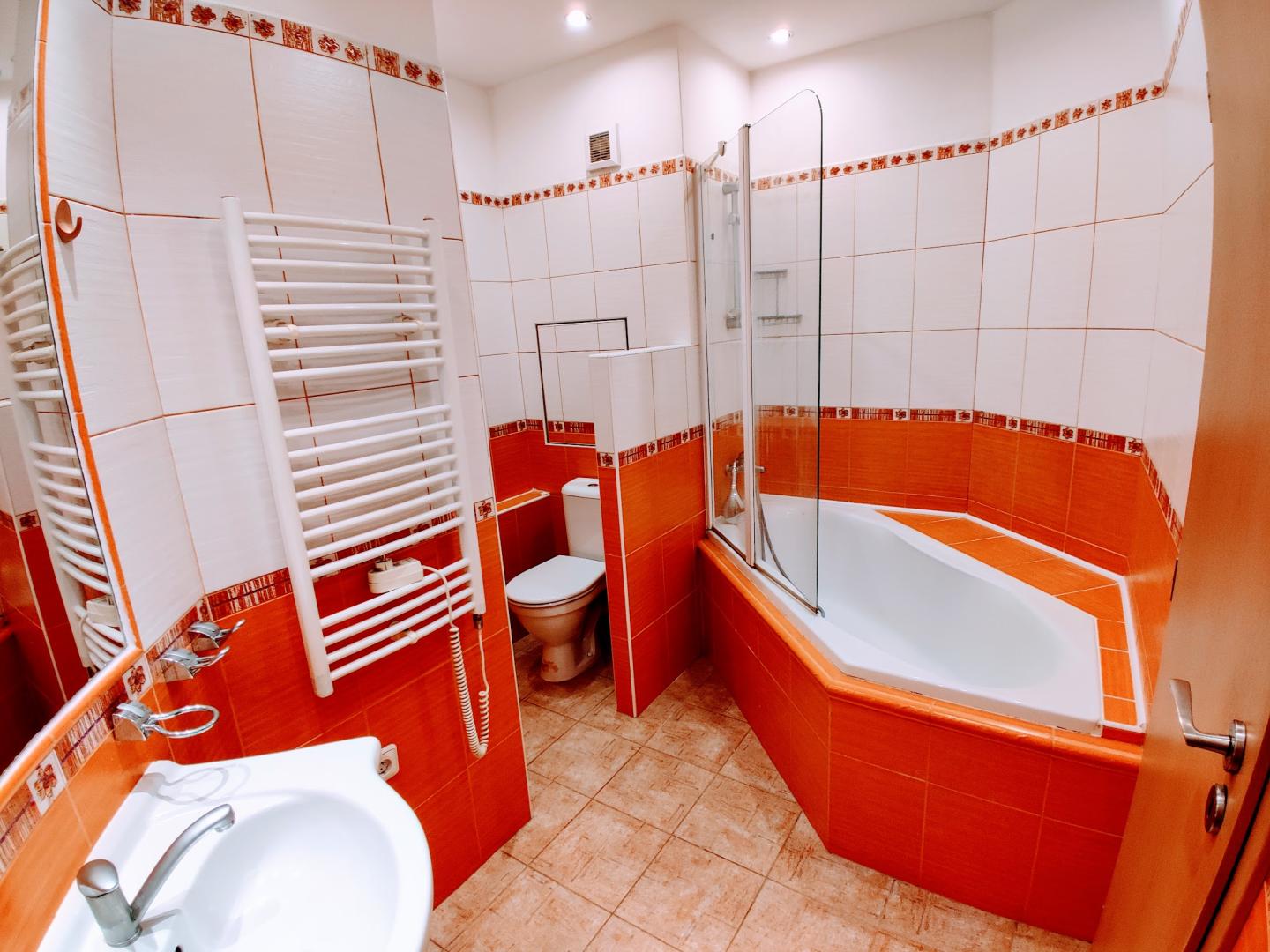 Byt se nachází v 6. patře domu s výtahem – na patře jsou pouze dva byty, což zajišťuje dostatek soukromí a klid. Kuchyň je vybavena linkou se sklokeramickou varnou deskou, troubou, mikrovlnnou troubou a myčkou nádobí.