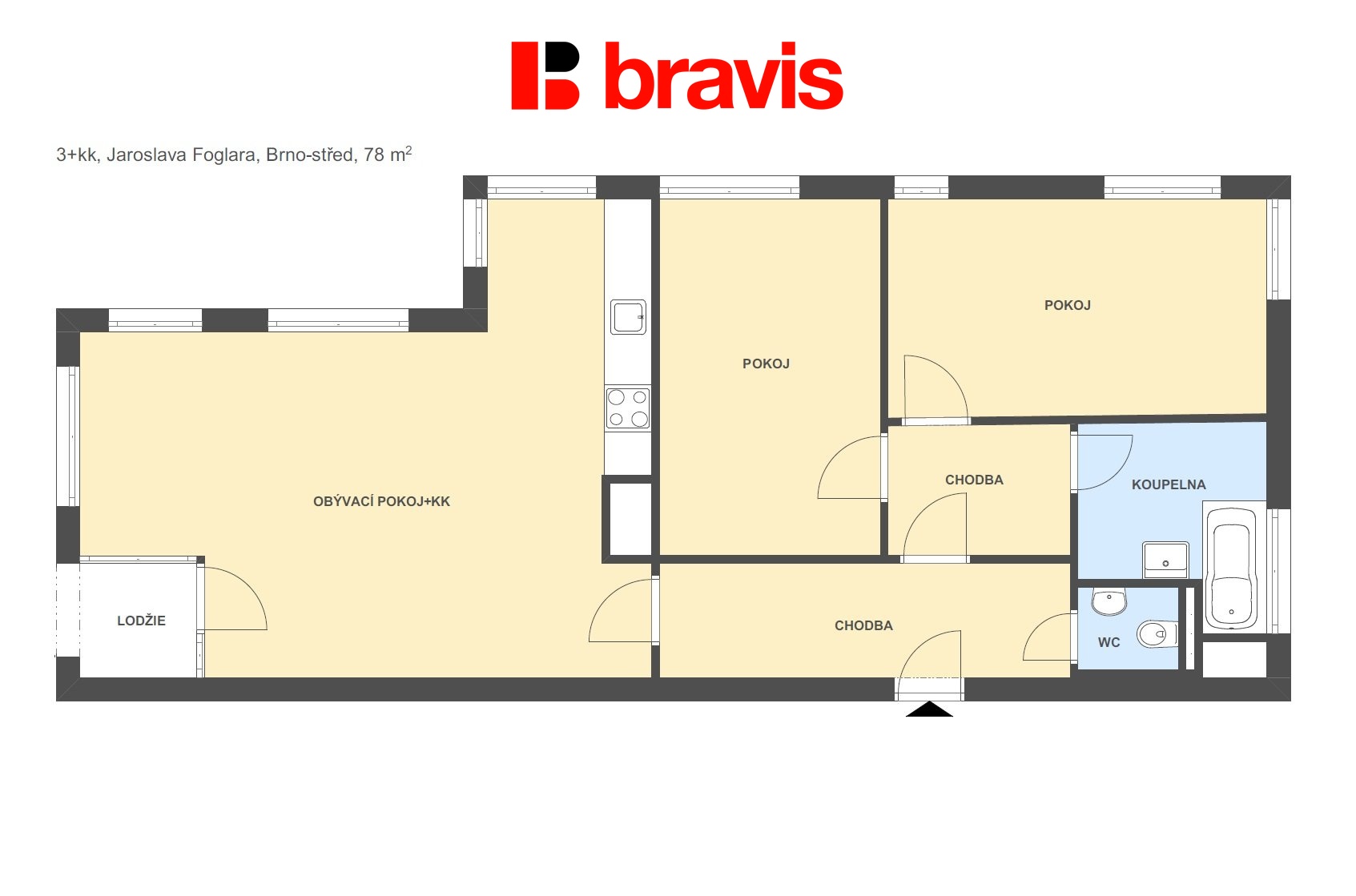 Byt o podlahové ploše 78 m2, balkon 4m2 se nachází ve 3.NP bytového domu s výtahem.