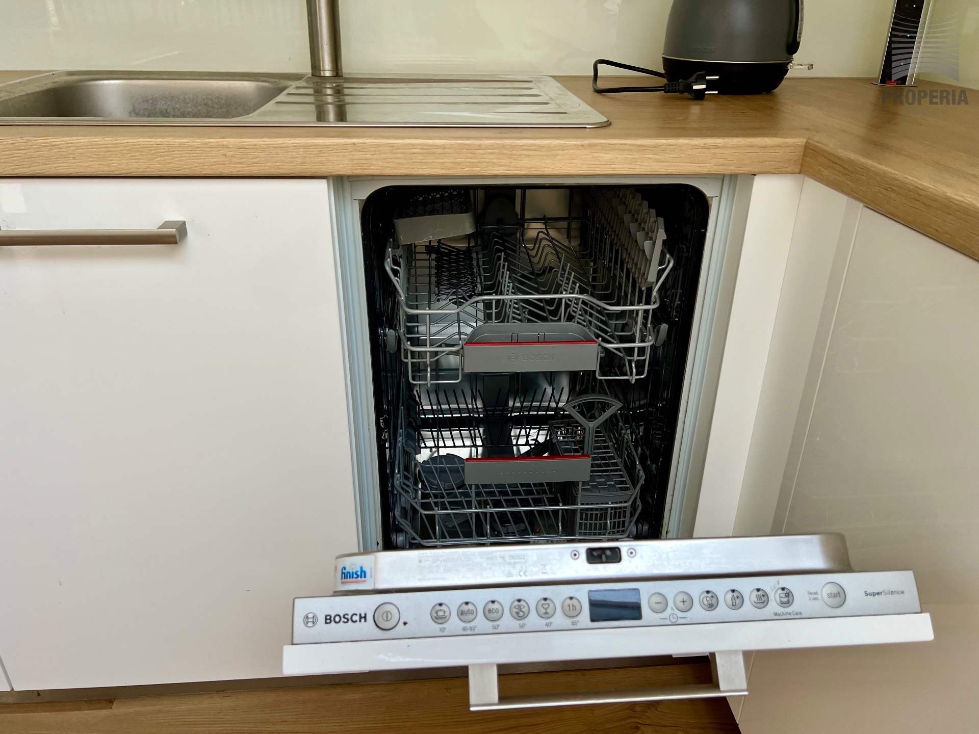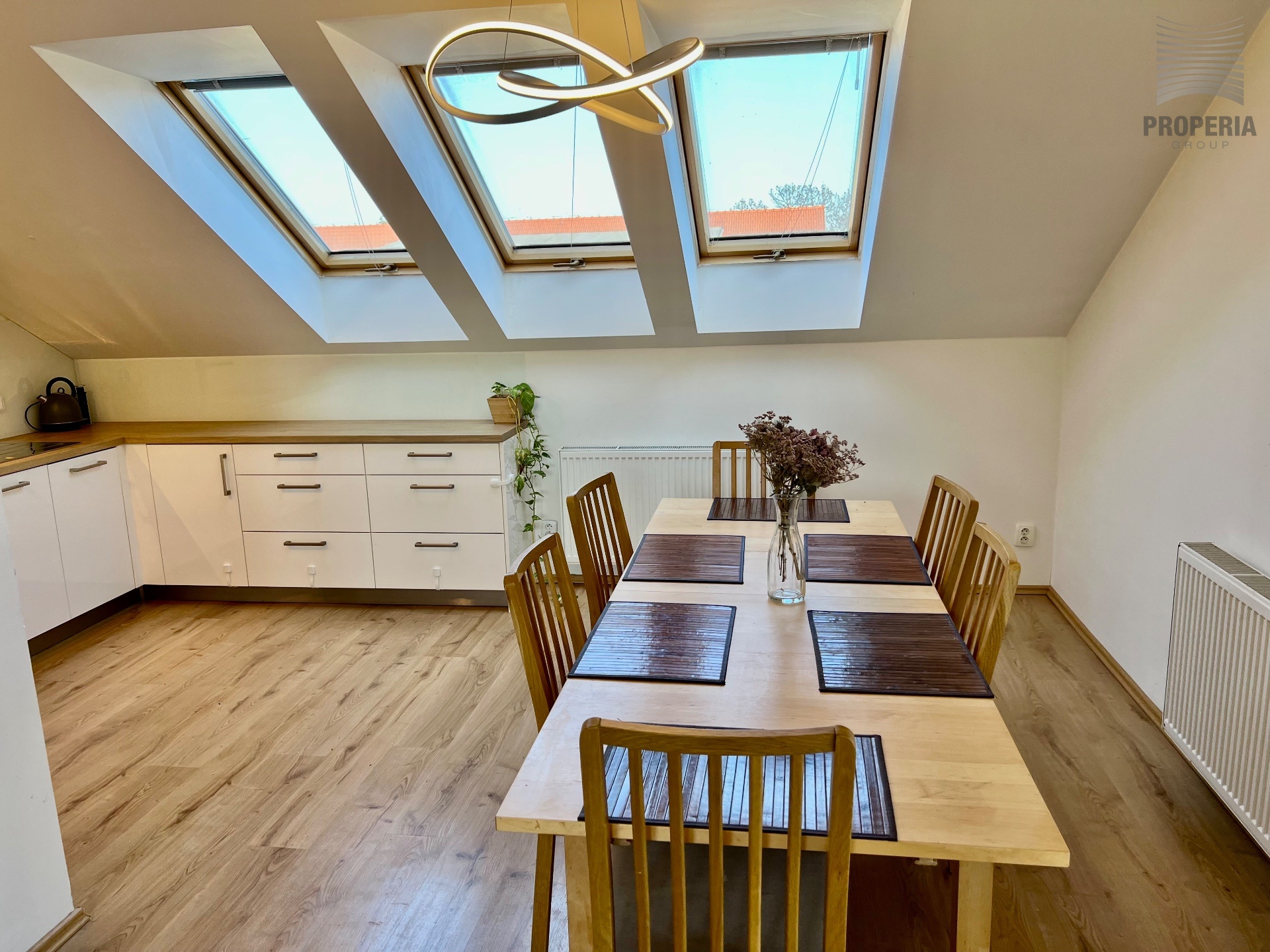 Nabízíme k pronájmu částečně zařízený zděný byt o dispozici 3+kk s malou terasou, ul. Přední, Brno-Černovice. 4. p/4 zrevitalizovaného domu bez výtahu. CP bytu činí 79 m2 (z toho cca 2 m2 terasa). Dispoziční řešení bytu nabízí neprůchozí pokoje. V předsíni je k dispozici velká vestavná skříň. Koupelna s vanou a sprchovací zástěnou, WC je samostatné. Kuchyňská linka s indukční varnou deskou a vestavnou horkovzdušnou troubou, chladničkou s mrazákem a myčkou nádobí - viz. fotodokumentace. Z dalšího vybavení zůstane k dispozici i automatická pračka, jídelní stůl se židlemi a skříně v obývacím pokoji. Nová střešní okna s elektricky ovládaným stíněním. Velkou výhodou je i vytápění a ohřev TUV vlastním plynovým kotlem.