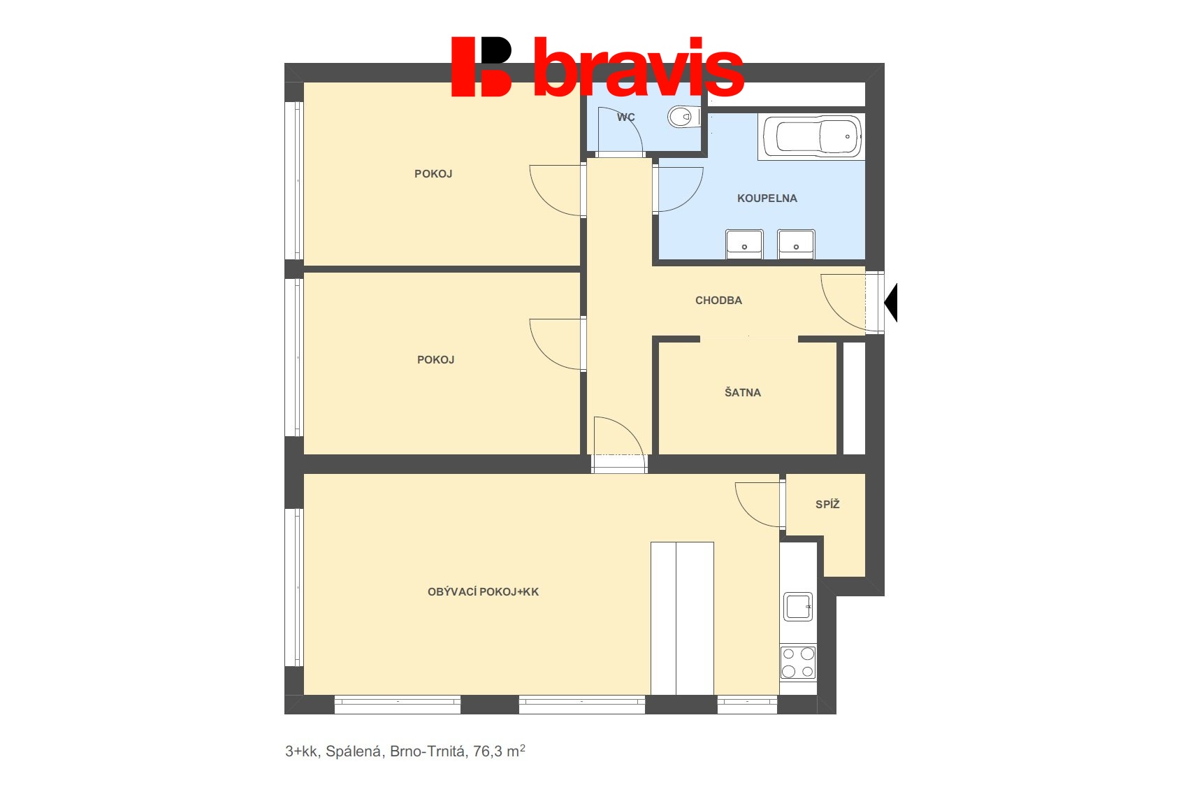 Ve výhradním zastoupení majitele nabízíme k dlouhodobému pronájmu jedinečný byt o dispozici 3+kk s užitnou plochou 76 m², který se nachází na vyhledávané adrese Spálená v městské části Brno-Trnitá.