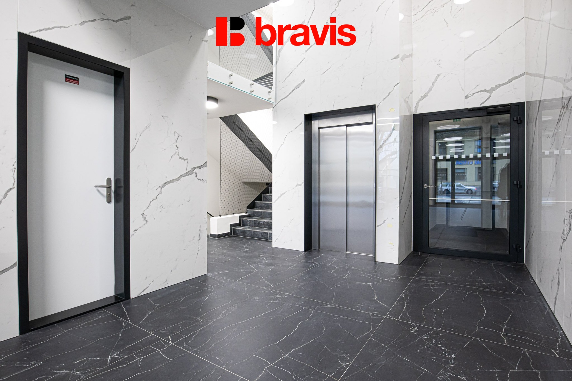 Byt o celkové výměře 75 m² se nachází ve 4. nadzemním podlaží polyfunkčního domu s výtahem.