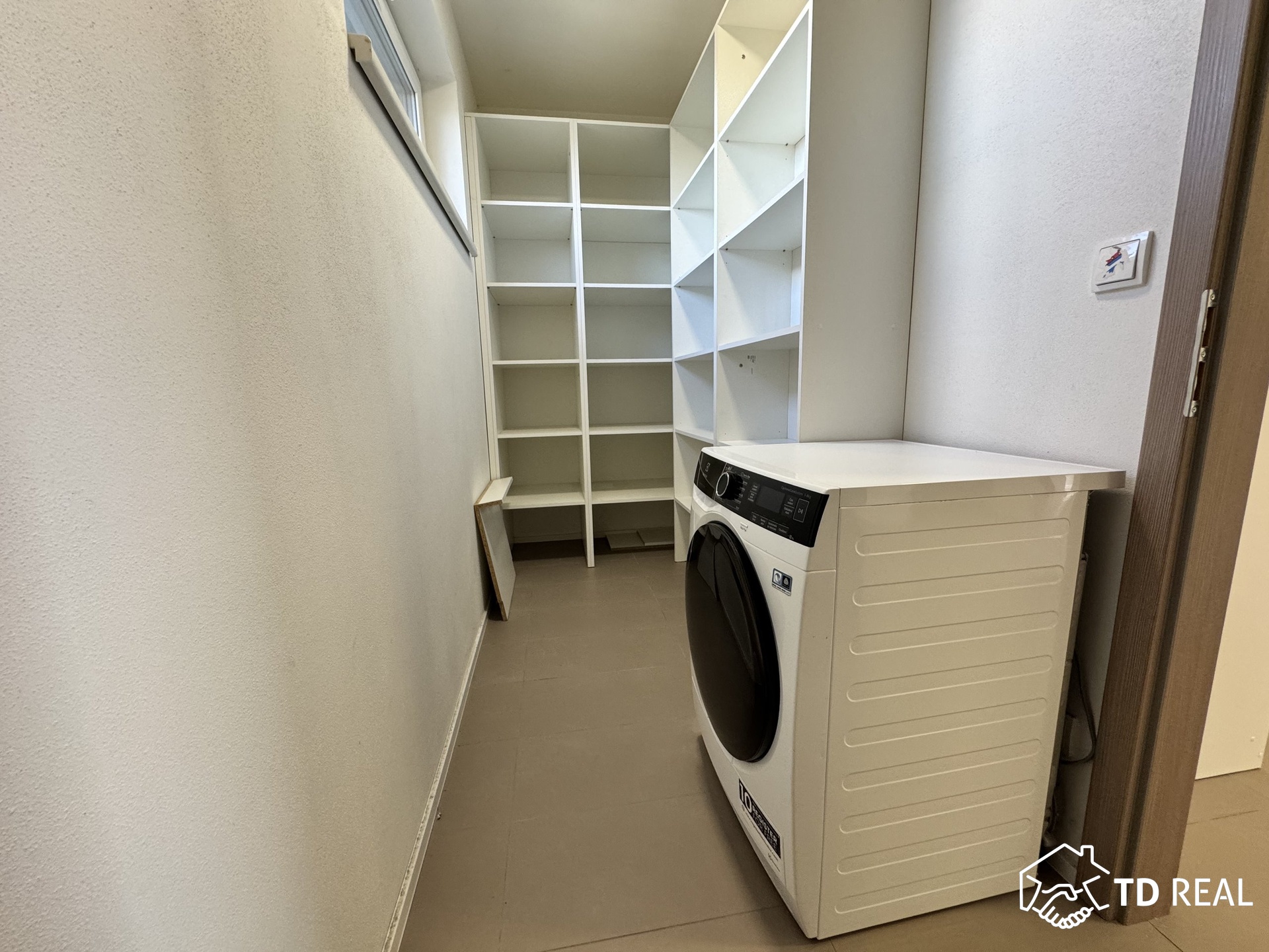 Chodba - skříň, Komora - regál, sušička, Ložnice - skříň, Dětský pokoj - skříň, Koupelna - pračka.