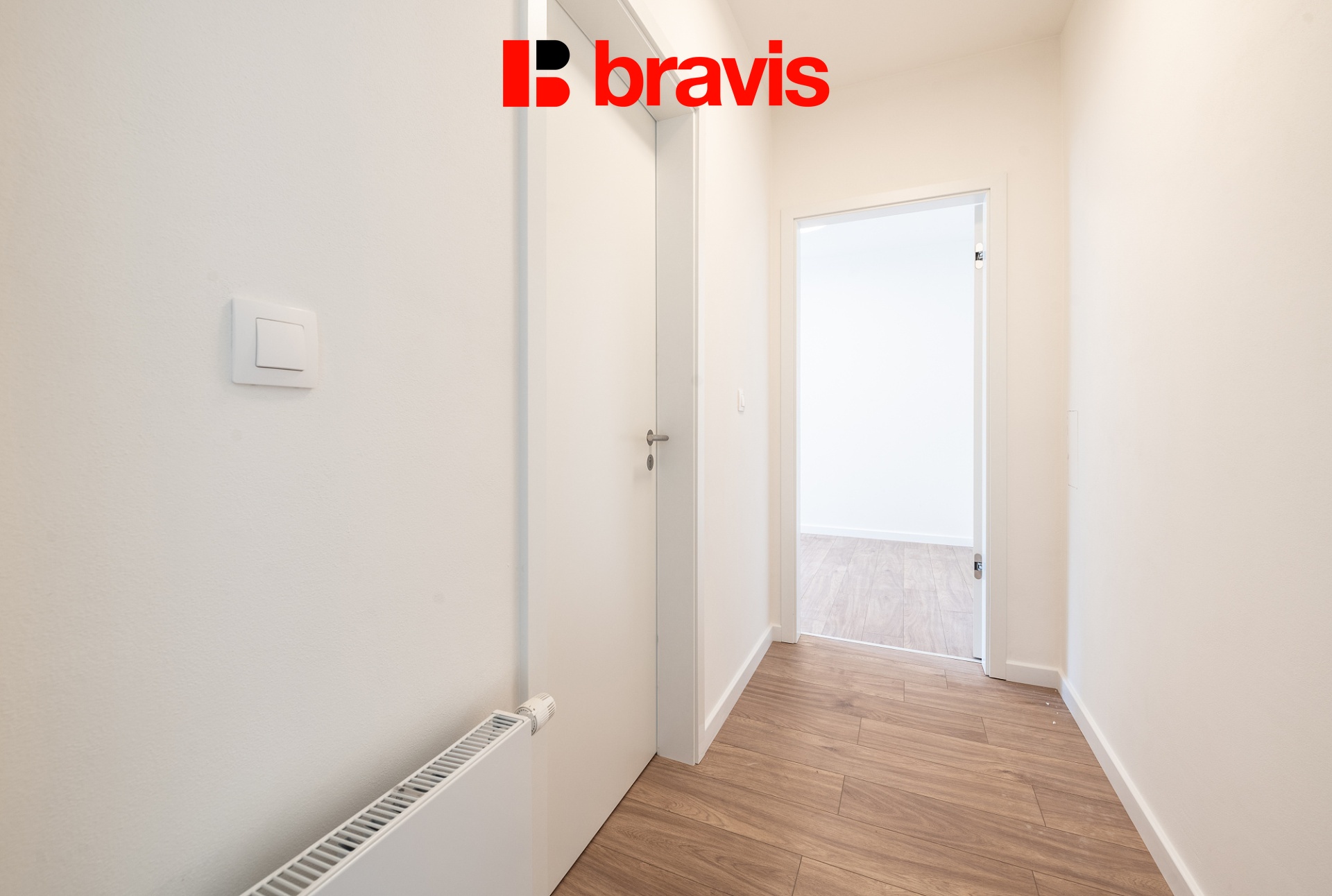 Obývací část pokoje i obě ložnice mají vstup na terasu a jsou bez vybavení.