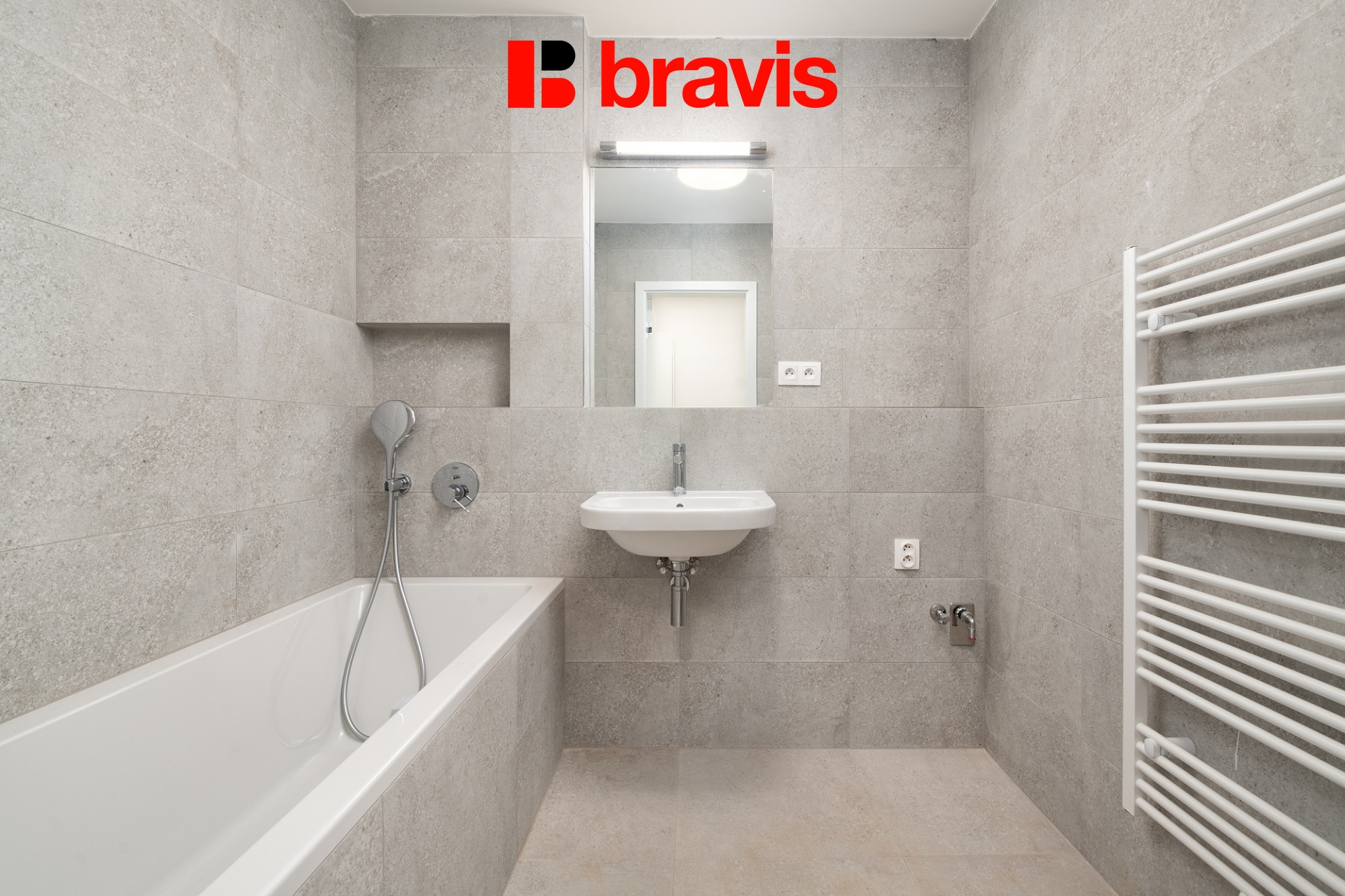 V koupelně je vana, umyvadlo, otopný žebřík. Toaleta je odděleně.