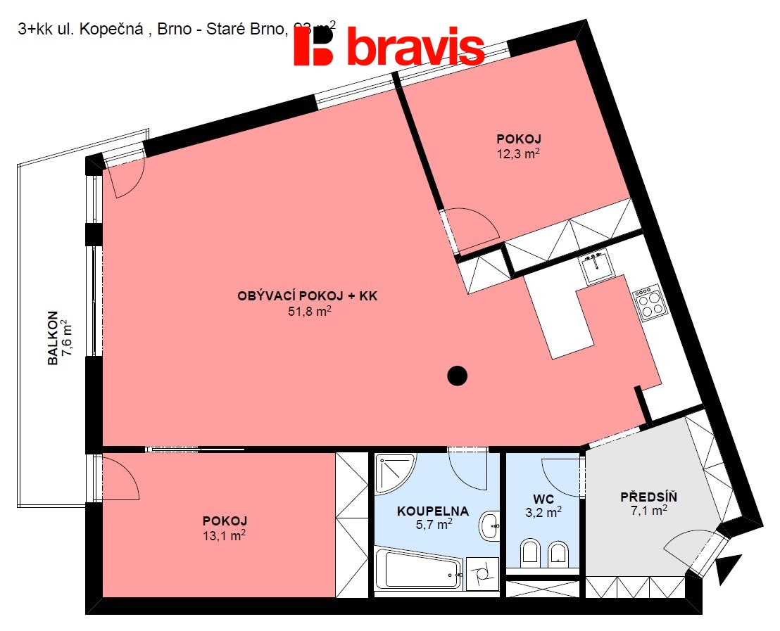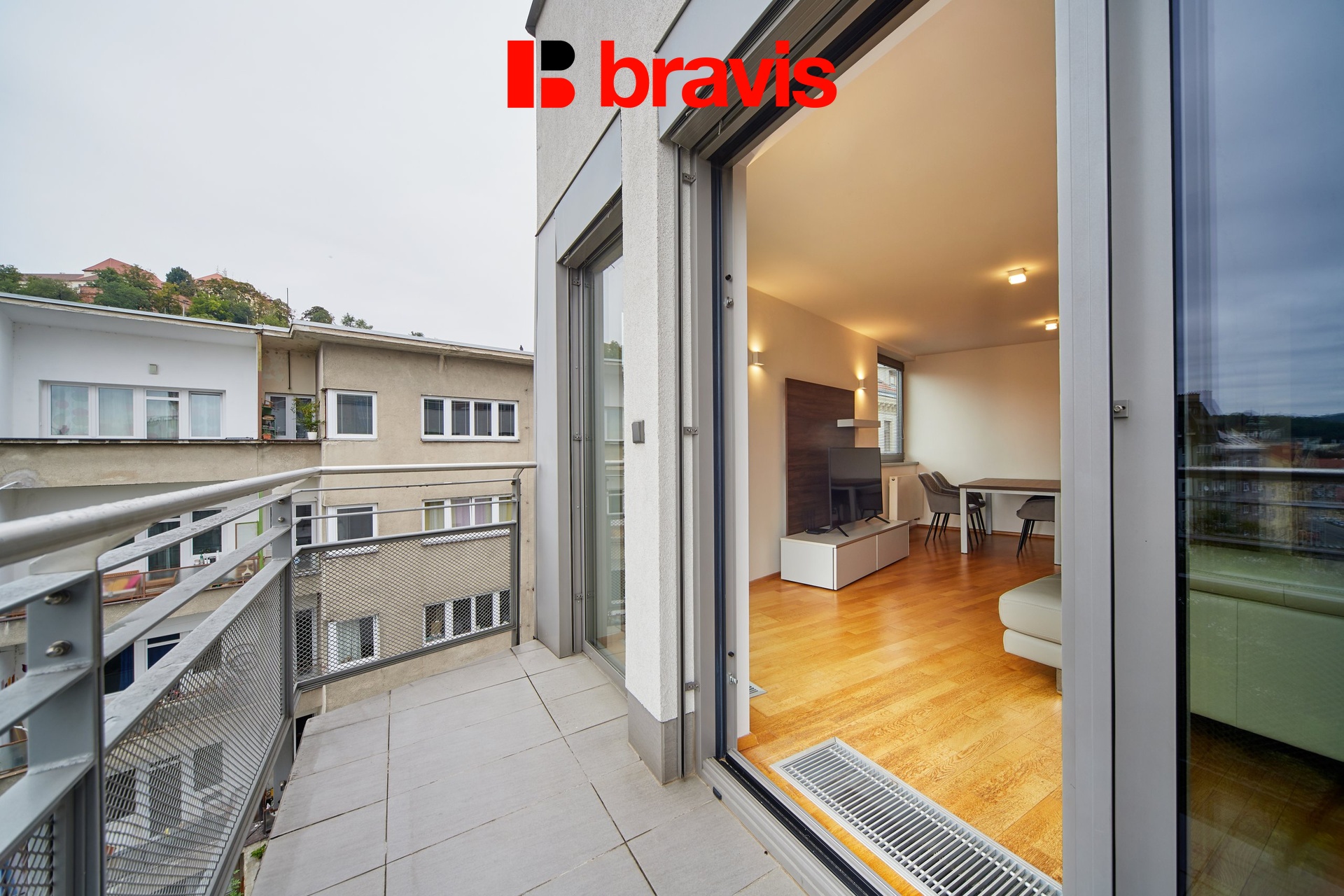 V zastoupení majitele nabízíme k dlouhodobému pronájmu nadstandardní byt 93,2 m2 o dispozici 3+kk s balkonem 7,6 m2 v centru Brna na prestižní adrese s nádherným výhledem na celé Brno na ulici Kopečná v rezidenci Anenské terasy.