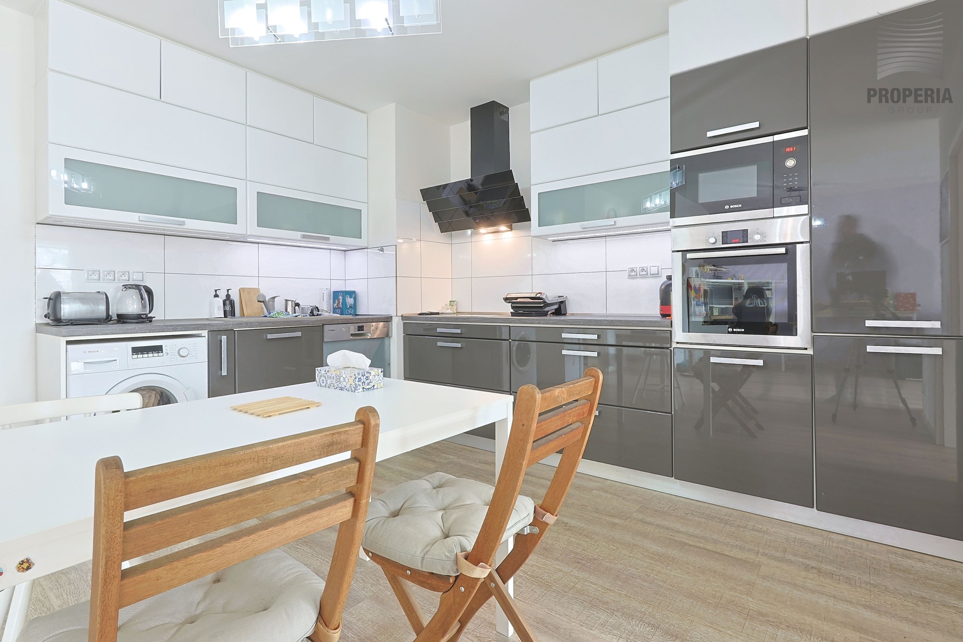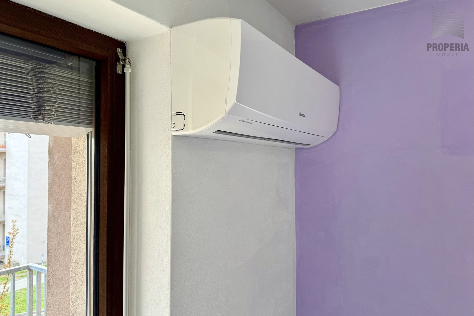 Součástí bytu je klimatizace a předokenní žaluzie pro zachování příjemné teploty i v letních dnech. Kuchyňská linka je nadstandardně vybavena, součástí myčka, trouba, indukce.