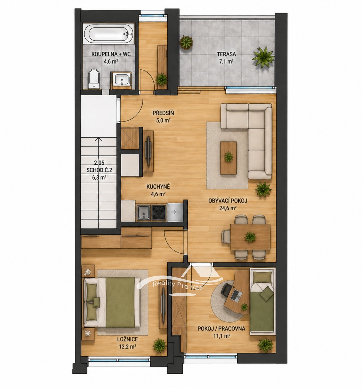 Pronájem bytu 3+kk s terasou | Brno–Obřany