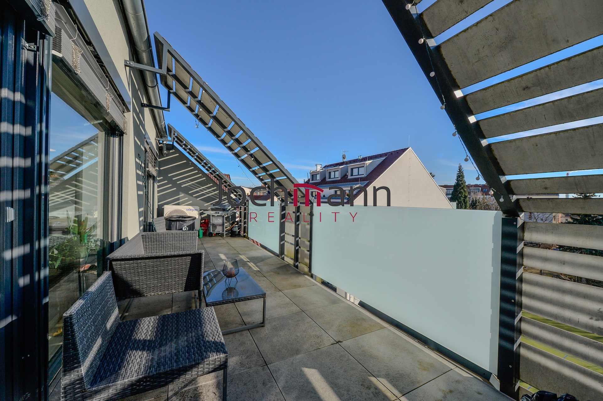 Provedení a zařízení bytu se celkově nese v nadstandardním stylu (kvalitní zpracování kuchyňské linky, perfektní spotřebiče, předokenní žaluzie, klimatizace, designové obklady v koupelně atd). Za příplatek 1.000,- Kč parkovací místo v kryté garáži přímo v budově. Vzhledem k charakteru posledního patra bude v bytě vždy krásný klid, při horkých dnech pak perfektně pomůžou klimatizační jednotky v kombinací s předokenními žaluziemi. Hlavní přidanou hodnotou tohoto bydlení je zejména perfektní lokalita s ideální docházkovou vzdáleností do centra dění, možnost parkování v kryté garáži, nadstandardní zařizovací předměty a prvky bytu, dvě terasy a celkově dobře řešená dispozice bytu. K dispozici od 01.03.2026. Více informací u makléře. Doporučujeme.