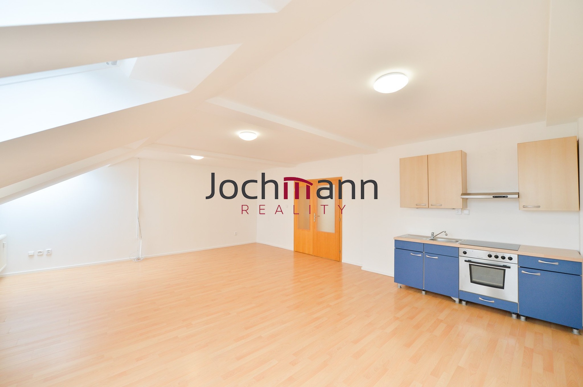 Byt disponuje dvěma samostatnými pokoji, které jsou vybaveny střešními okny, jež zajišťují příjemné prosvětlení. Součástí bytu je také prostorná chodba s vestavěnou skříní, která poskytuje dostatek úložného prostoru. Koupelna je vybavena sprchovým koutem a nabízí prostor pro umístění pračky. Dominantou bytu je velkorysý obývací pokoj propojený s kuchyňskou linkou.