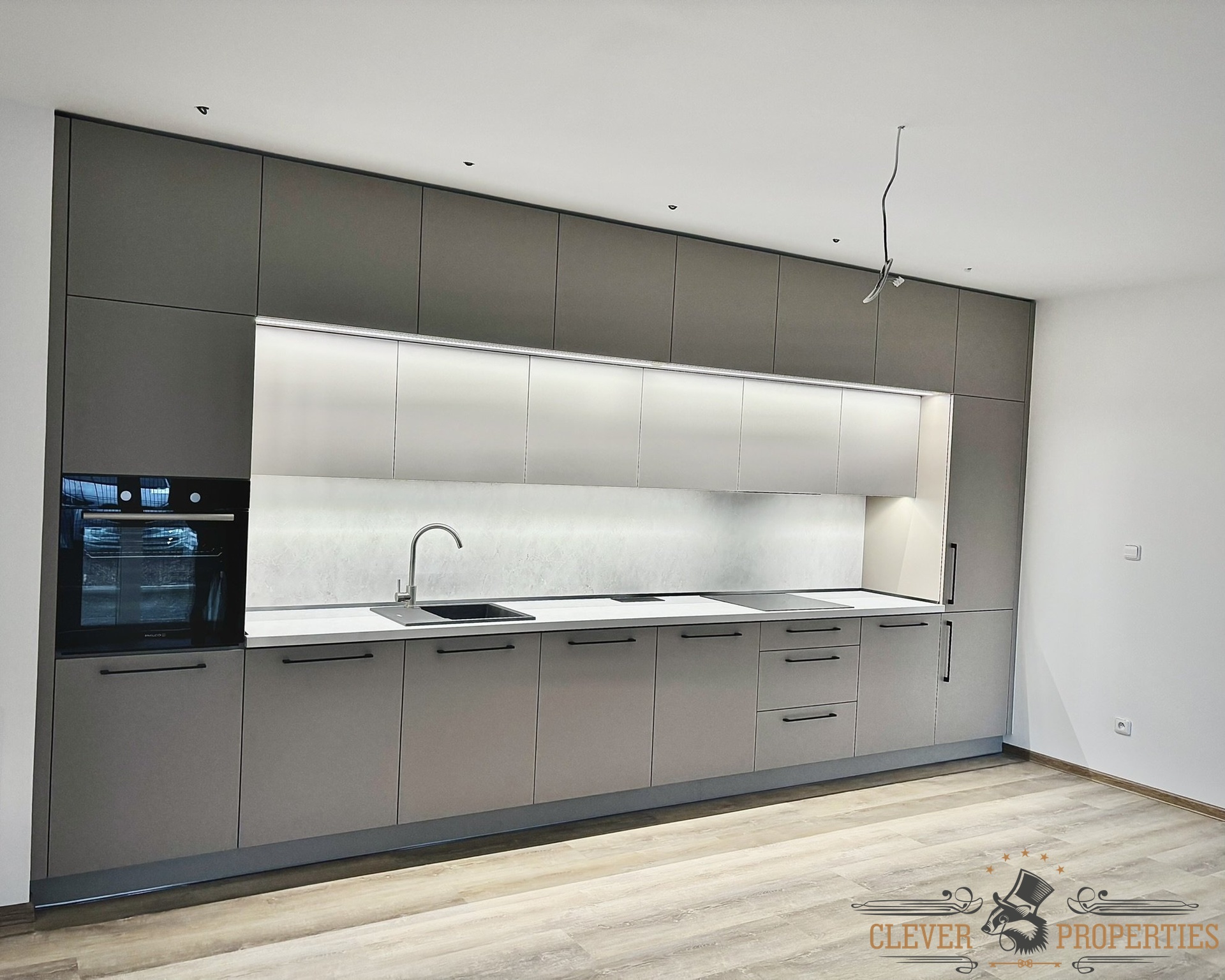 Je zde instalována nová kuchyňská linka se spotřebiči značky Philco – vestavná lednice, myčka, trouba, varná deska i digestoř. Kuchyň tak bude kompletně vybavena a připravena k užívání.