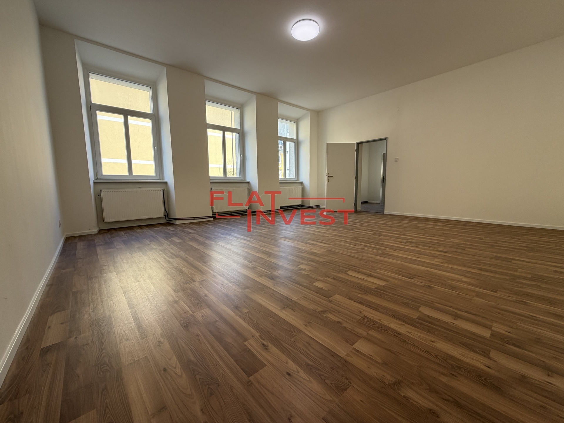 Nabízíme k pronájmu nezařízený, zrekonstruovaný a útulný byt o dispozici 3+kk a podlahové ploše 106 m² s balkonem v 2. NP zrestaurovaného činžovního domu v centru Liberce.