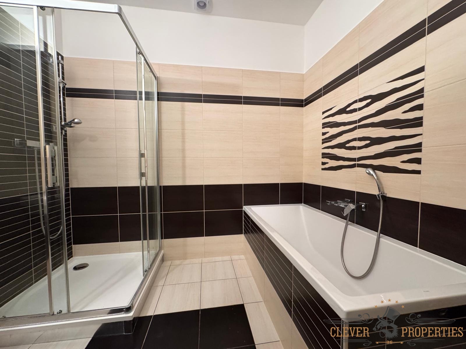 Součástí bytu je balkón o velikosti 14 m² a prostorná terasa o rozloze 42 m². Parkování je zajištěno pro dva automobily přímo u domu.