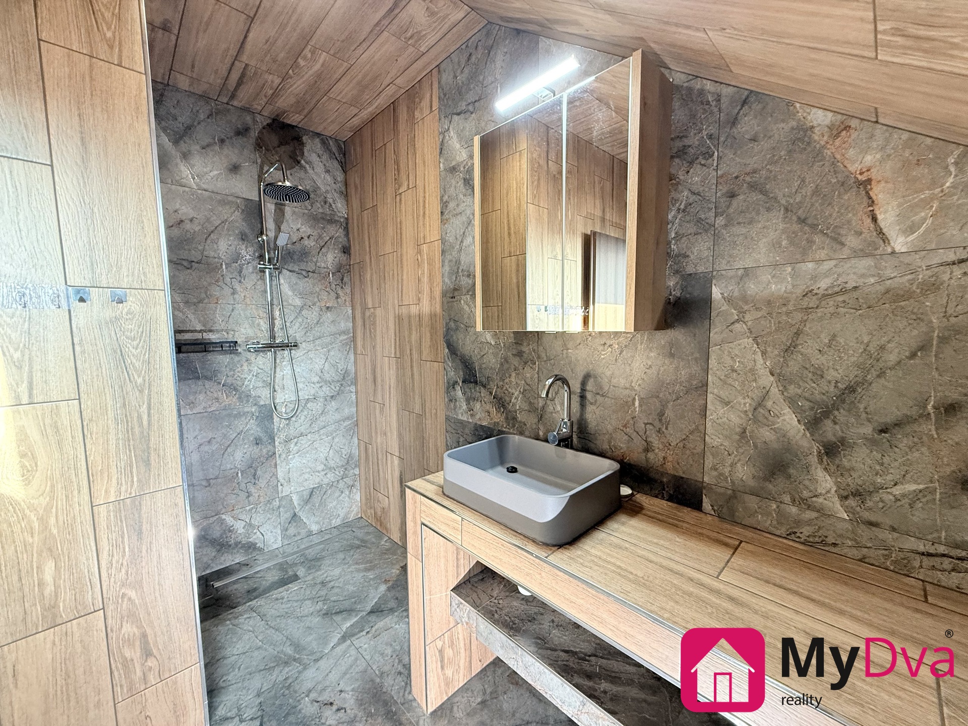Luxusní Koupelna: Designová koupelna se sprchovým koutem a samostatné WC přinášejí eleganci a pohodlí.