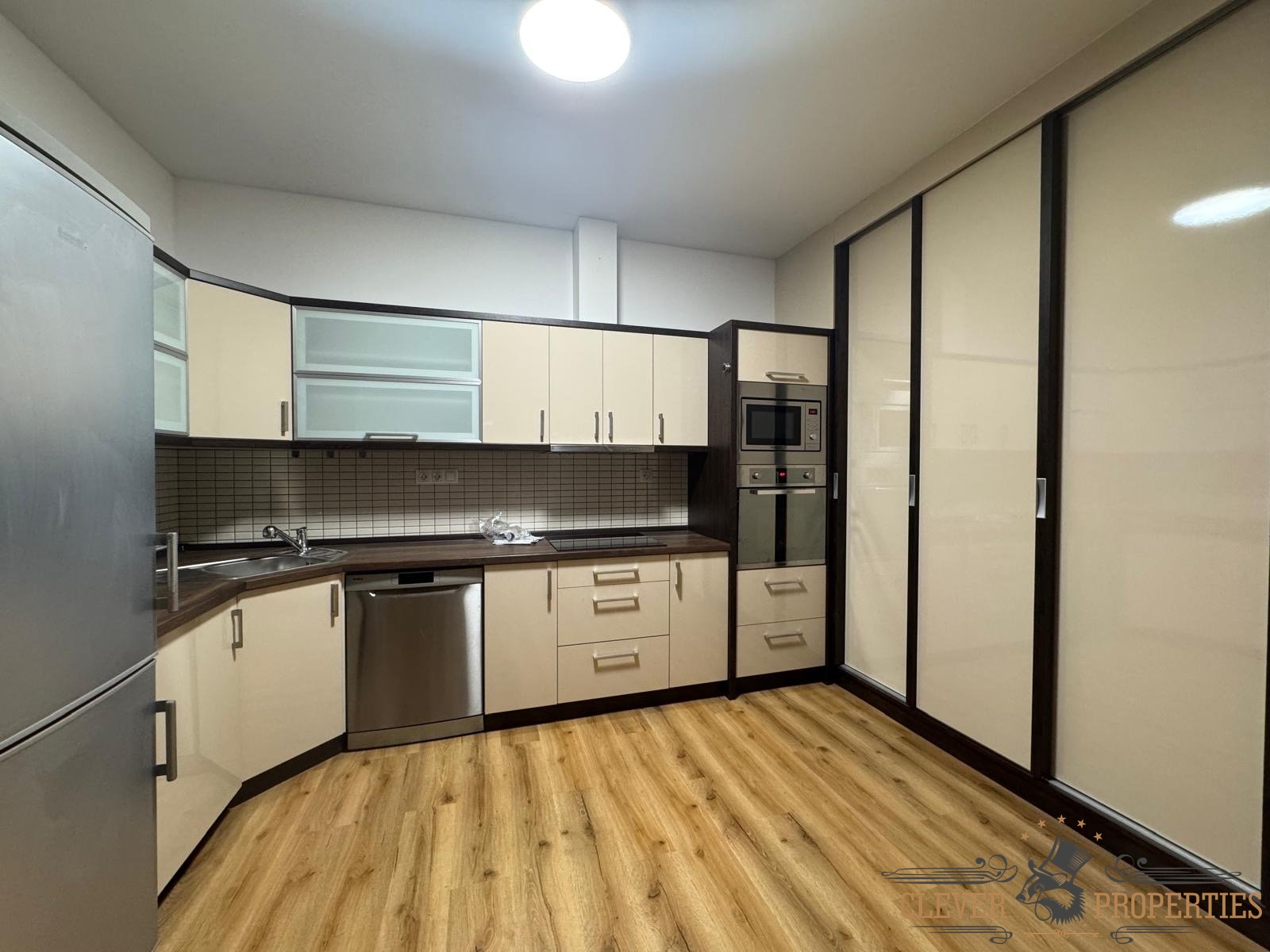 Byt prošel rekonstrukcí podlah a je vybaven zcela novou kuchyňskou linkou včetně spotřebičů – lednice, myčky, pračky, mikrovlnné i horkovzdušné trouby, indukční varné desky a digestoře. Koupelna nabízí jak vanu, tak sprchový kout. V bytě je dostatek úložných prostor a unikátní systém světlovodů, který přivádí přirozené světlo do interiéru.