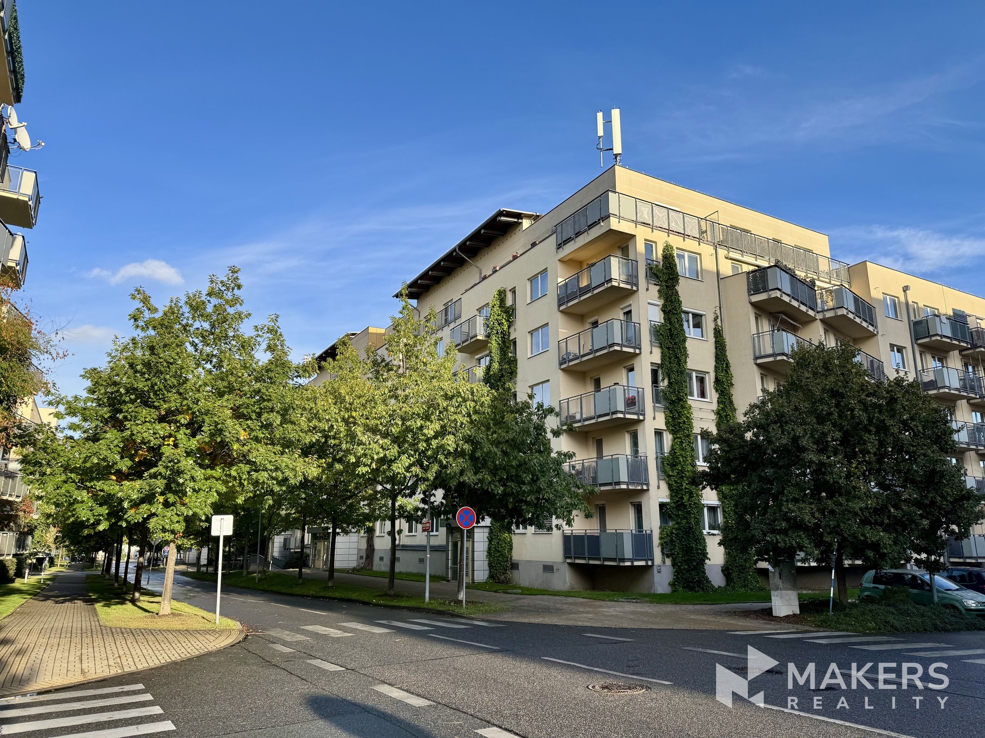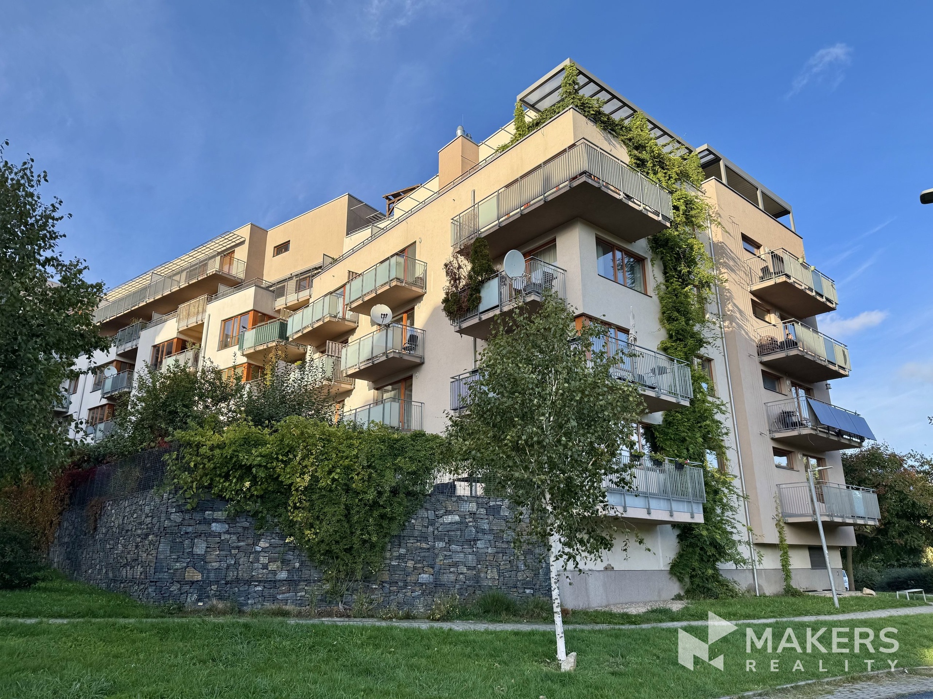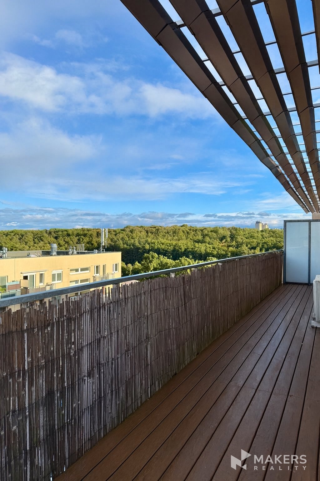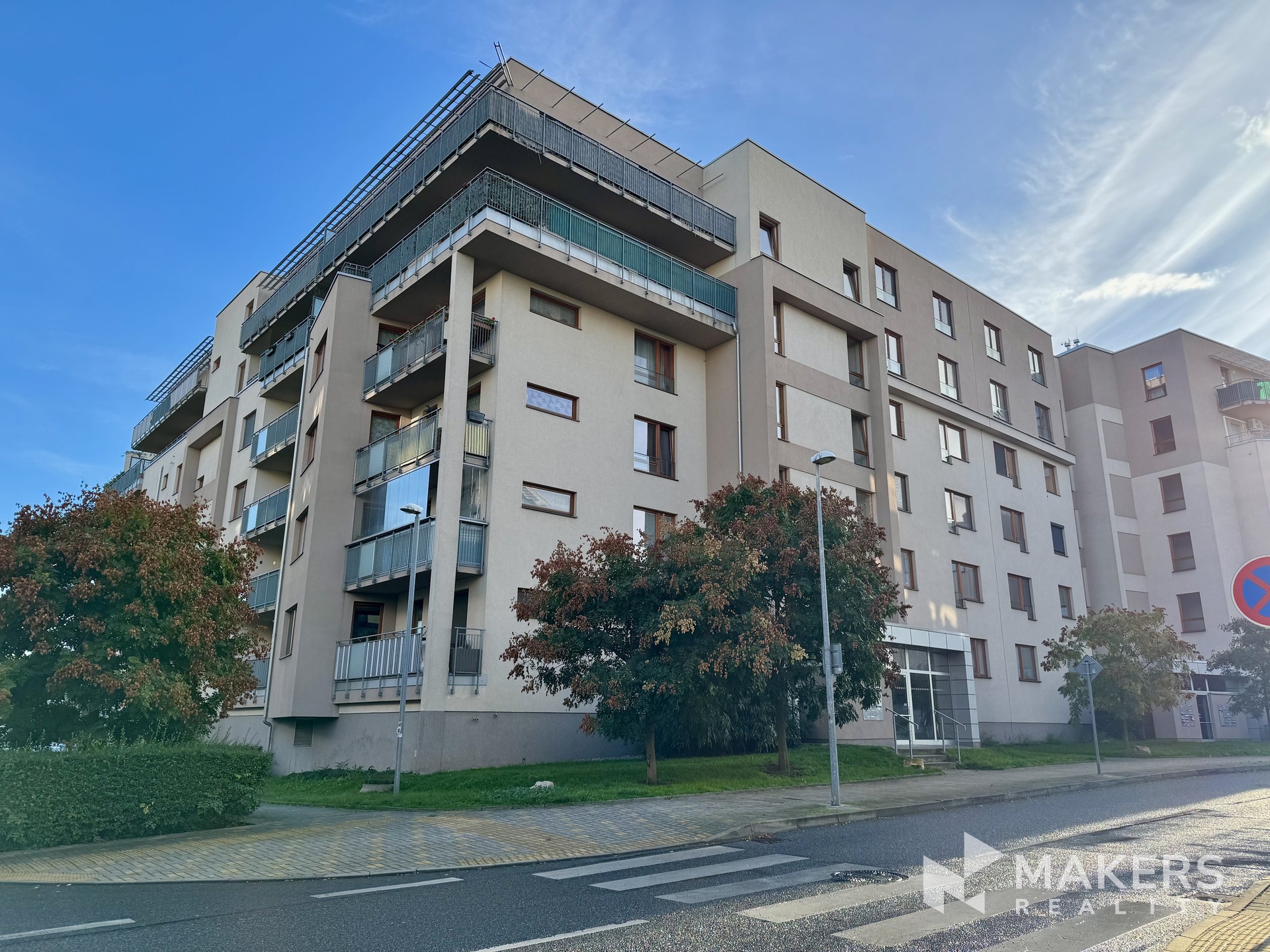 Byt se nachází v posledním 6. patře moderního domu s výtahem, což zaručuje maximální klid a krásný výhled na park.