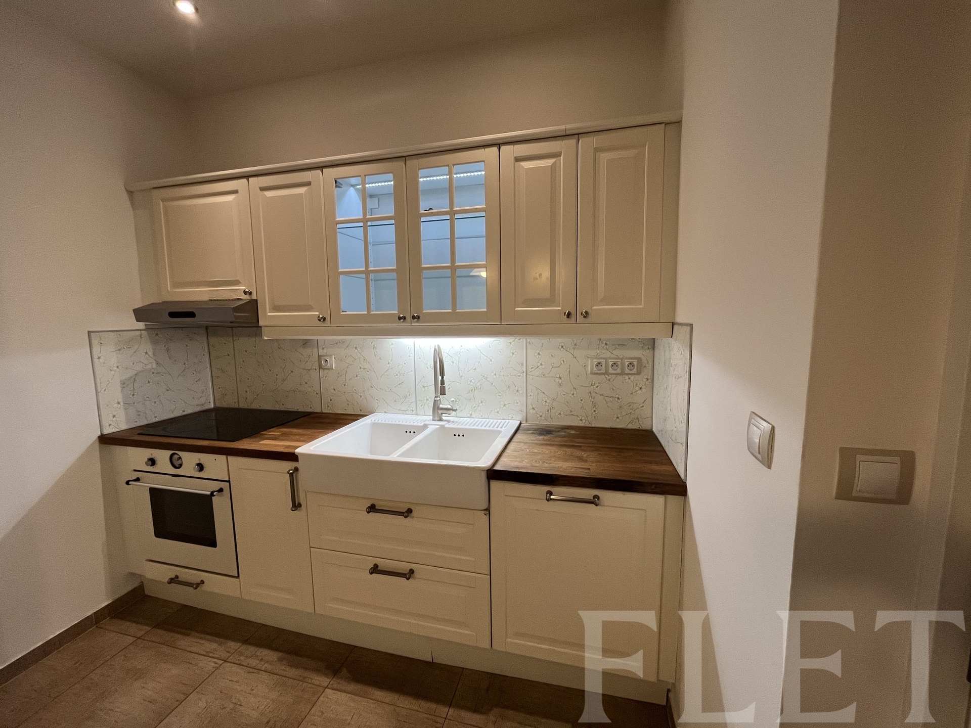 V bytě vás uvítá předsíň, ze které se dostanete do jednoho z menších pokojů, který můžete využít jako ložnici, dětský pokoj či pracovnu, do koupelny s vanou a na toaletu, která je samostatně. Dále vstoupíte do hlavní místnosti, která vás oslní svým prostorem, je zde dostatek místa pro obytnou i jídelní část s kuchyňským koutem, který je laděný do dobového stylu a je vybaven elektrickou i troubou, varnou deskou a vestavěnou lednicí s mrazákem. Na tuto místnost navazuje další pokoj oddělený prosklenými dvoukřídlými dveřmi. Z hlavní místnosti se také dostanete na velkou lodžii s výhledem do klidného vnitrobloku.