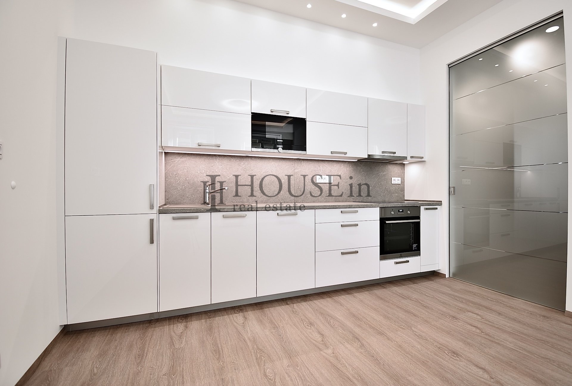 • Designová kuchyň s kompletními spotřebiči (indukční varná deska, lednice, myčka, horkovzdušná a mikrovlnná trouba)