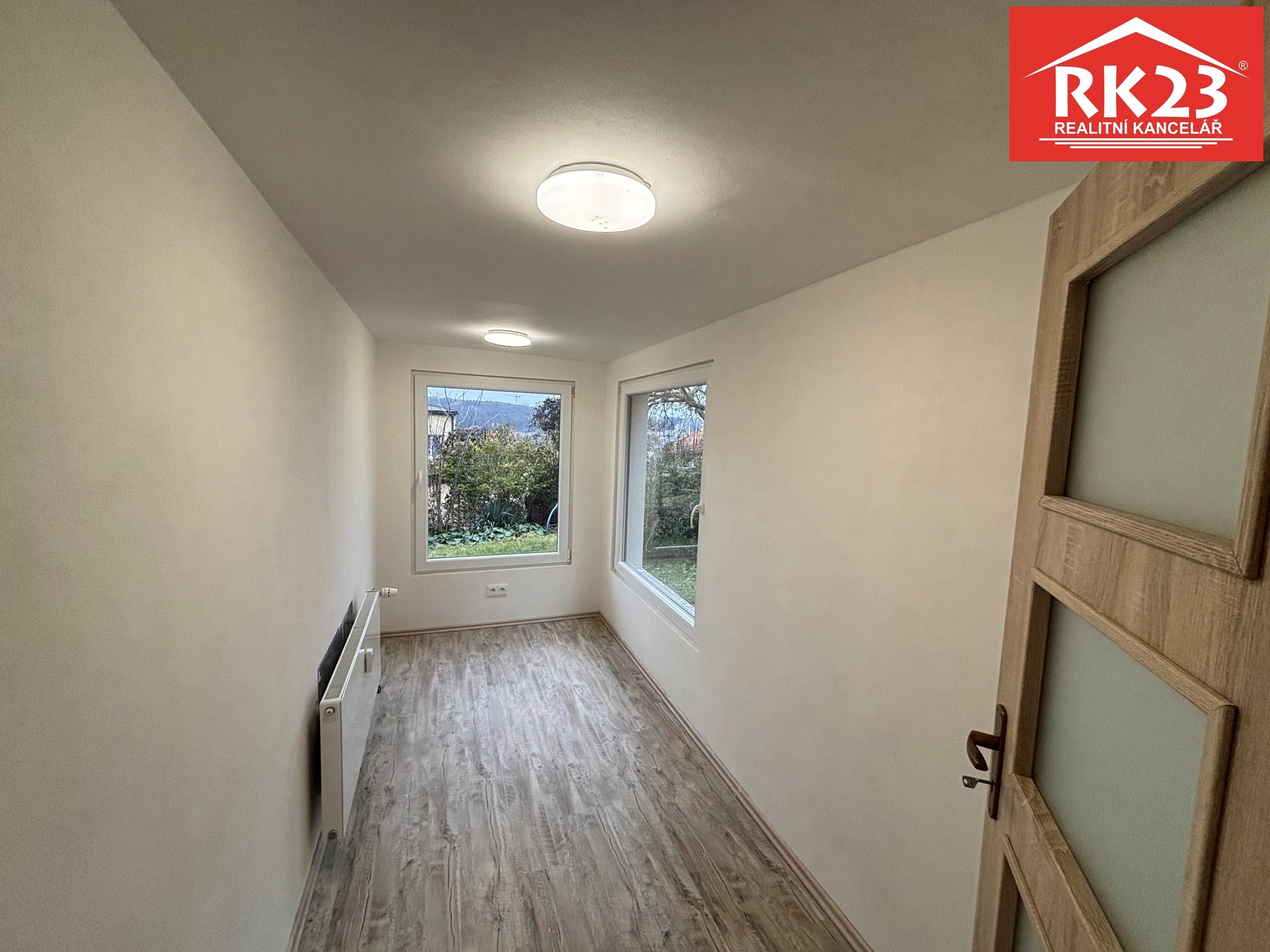 Pronájem bytu 3+kk se zahradou, v ulici Nad Obcí II, Praha - Krč. Byt je umístěn v přízemí rodinného domu, má vlastní vchod a k výlučnému užívání zahradu o výměře 300 m². Součástí bytu je obývací pokoj s francouzskými okny a vstupem na zahradu, plně vybavená kuchyň včetně kuchyňské linky a spotřebičů, moderní koupelna se sprchovým koutem a toaletou a 2 pokoje. K bytu dále náleží chodba s možností vestavby úložných prvků a velká technická místnost, která není zahrnuta do celkové plochy bytu a může být využita jako sklad nebo dílna. Velkou výhodou je vybavení domu tepelným čerpadlem, díky čemuž jsou velmi nízké náklady na energie. V bytě je možnost připojení na optický internet (cena dle zvoleného tarifu). Měsíční nájemné činí 33.000,- Kč, kauce je ve výši 50.000,- Kč. Měsíční záloha na služby je 1.550,- Kč a na energie 2.000,- Kč. Provize pro RK je 25.000,- Kč a hradí jí nájemce. Dům je umístěn v klidné lokalitě s dobrou občanskou vybaveností. Byt prošel důkladnou rekonstrukcí, vše je čisté a připravené k nastěhování. Byt nabízí moderní a klidné bydlení, které díky výhradnímu užívání zahrady odpovídá kvalitě bydlení v rodinném domě.