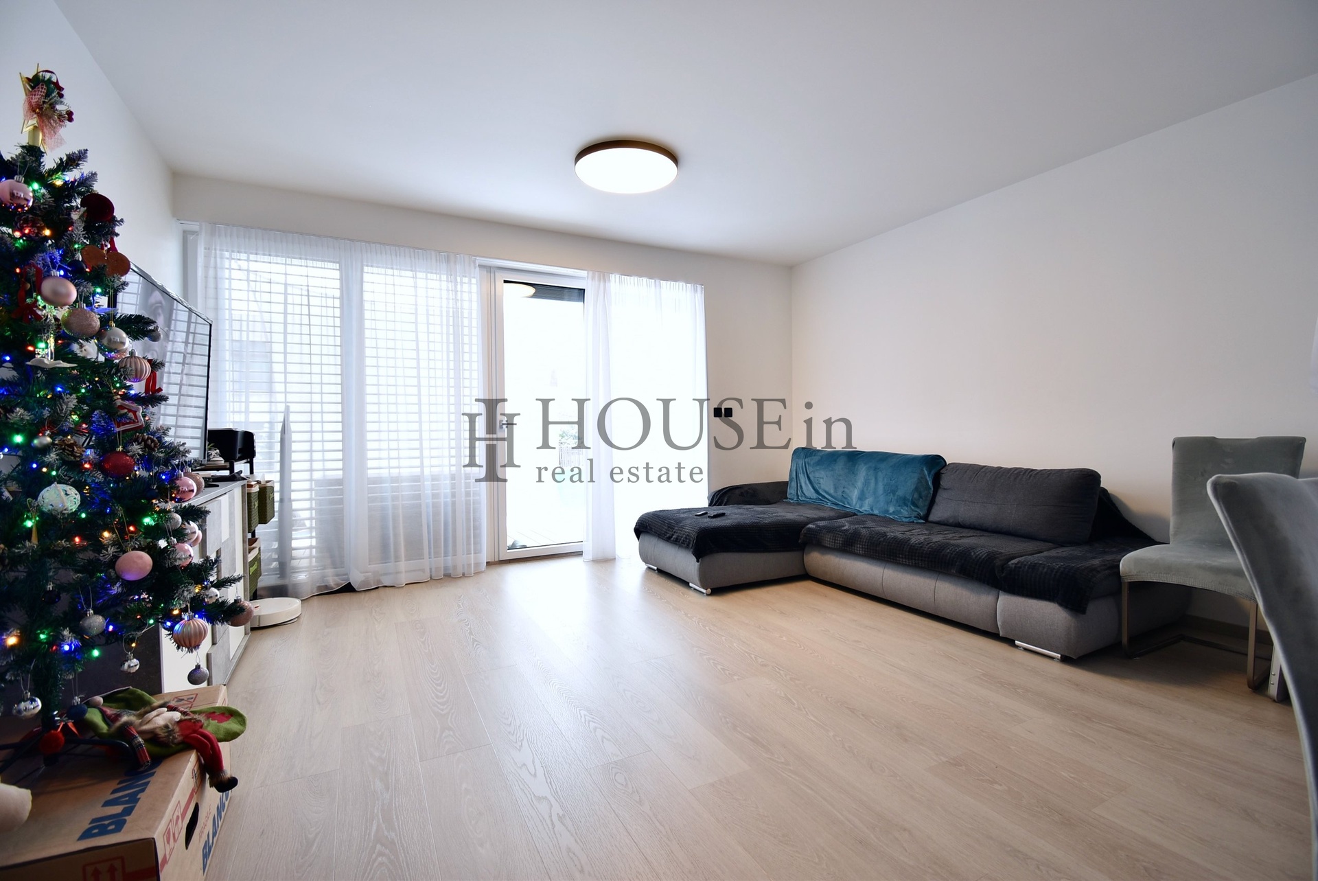 Vybavení bytu zahrnuje moderní kuchyňskou linku se všemi spotřebiči od značky Siemens (elektrická trouba, mikrovlnná trouba, lednice s mrazákem, myčka, digestoř), vestavěnou skříň v předsíni, záclony a možnost přidat i závěsy. K dispozici podlahové vytápění ve všech pokojích a předokenní žaluzie. Domácnost má přístup k optickému internetovému kabelu a připravené rozvody ve všech místnostech. Na patře je společná prádelna s pračkou a sušičkou určená pro tři byty.