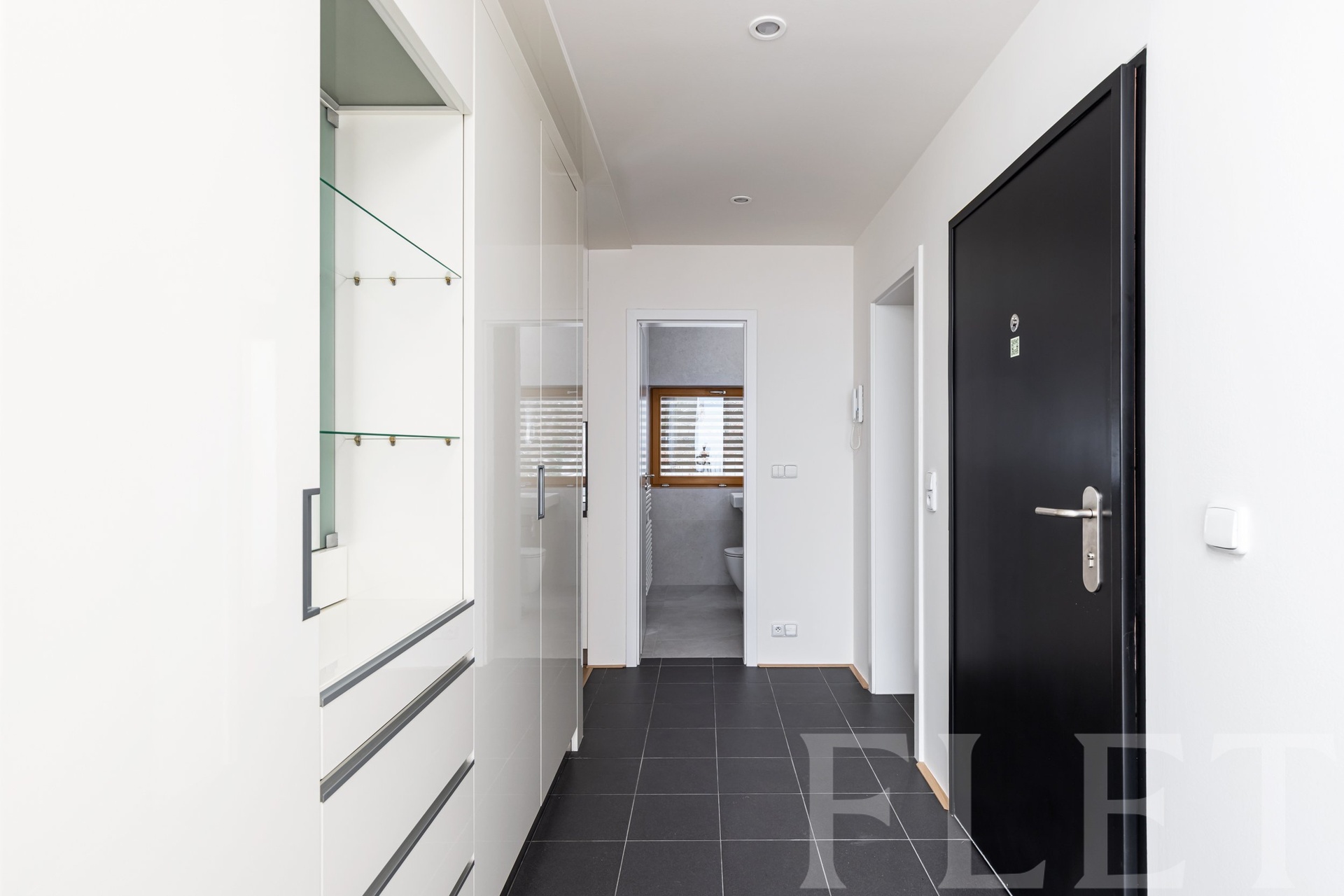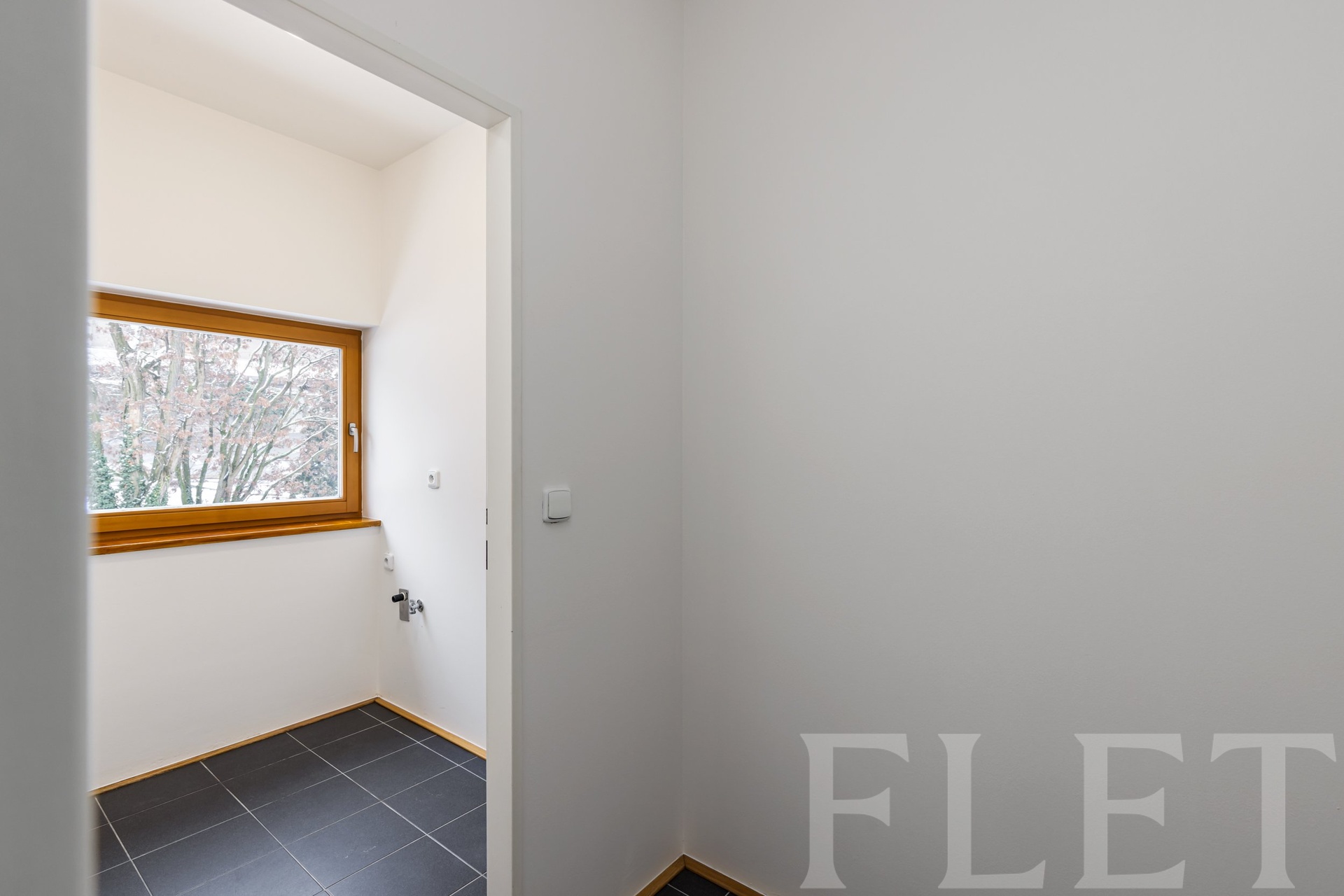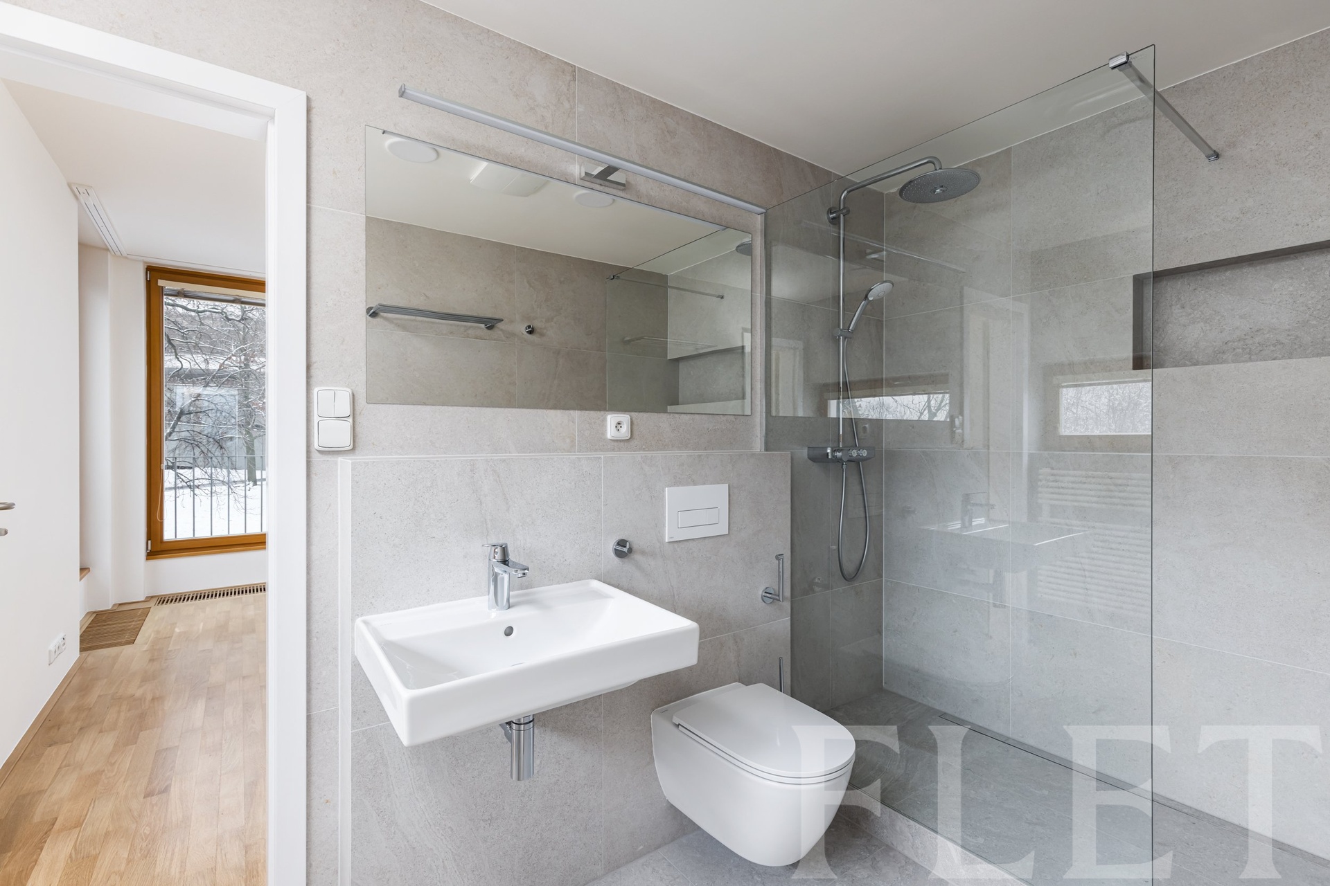 Koupelna je vybavena sprchovým koutem a toaletou, k dispozici je také samostatná toaleta a praktická technická místnost / prádelna určená pro pračku a sušičku. V předsíni se nachází velká vestavěná skříň s nadstandardním množstvím úložného prostoru.