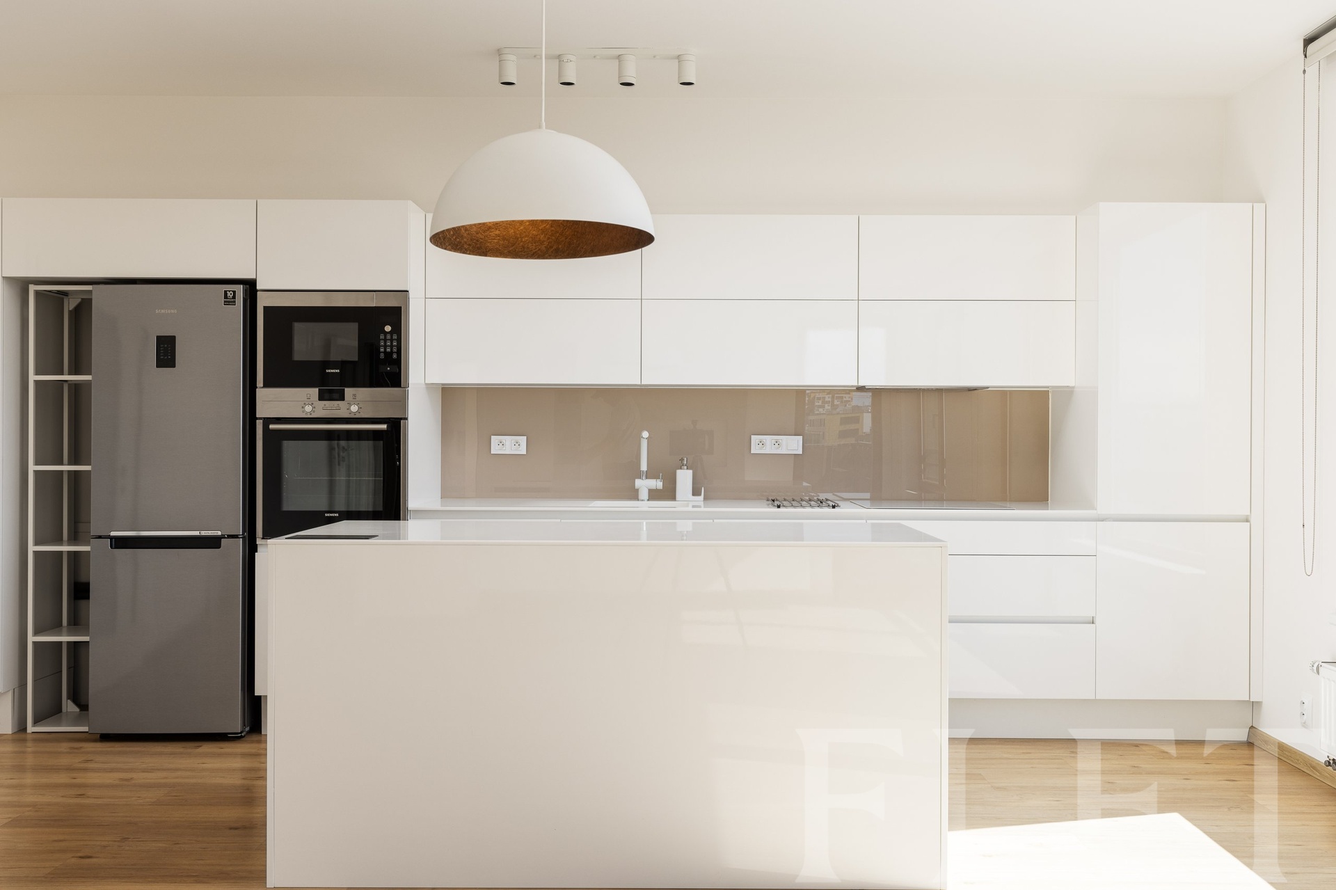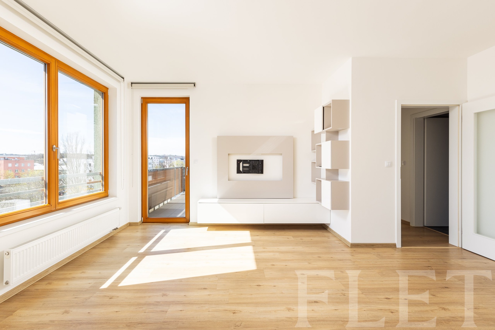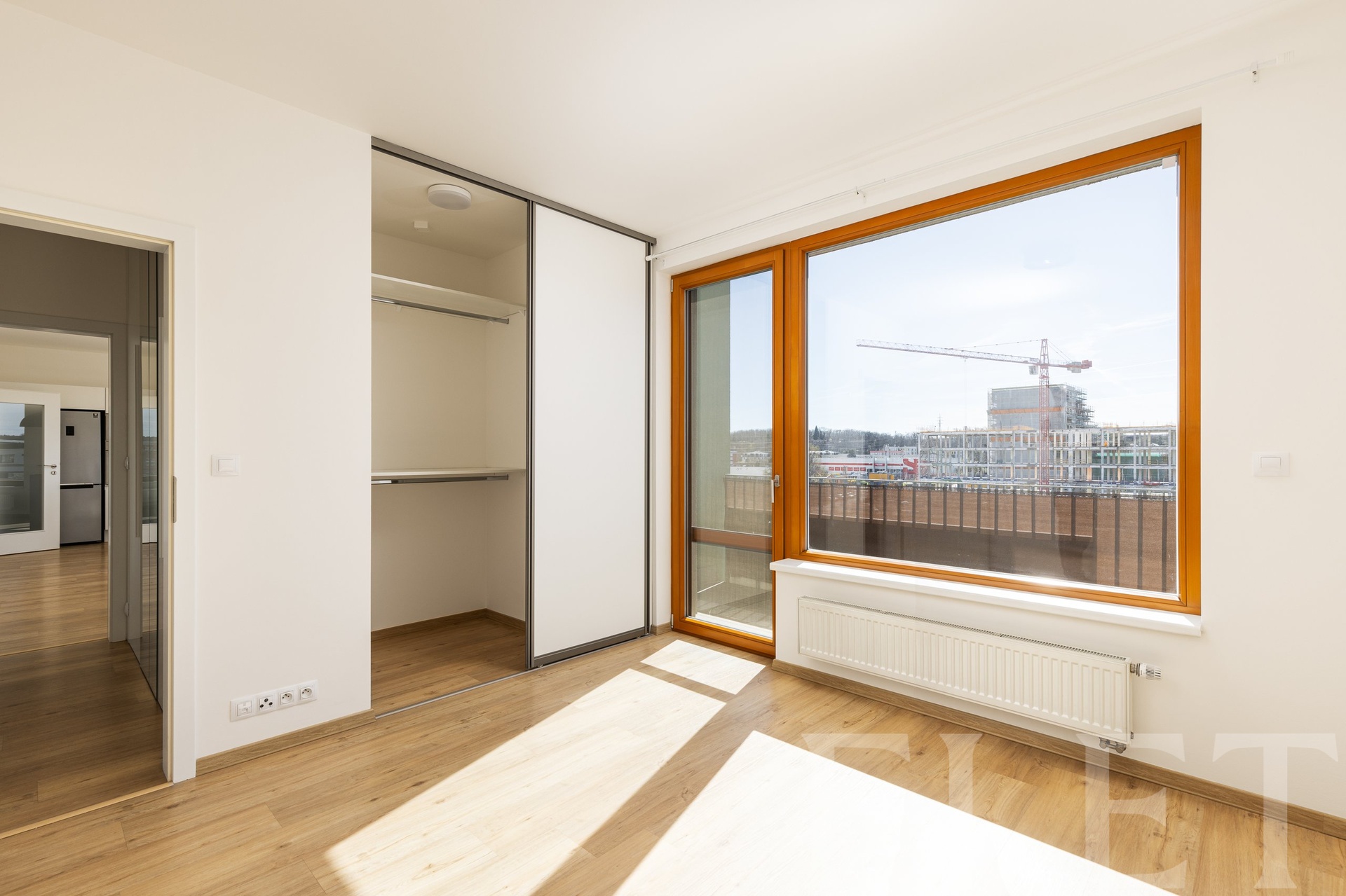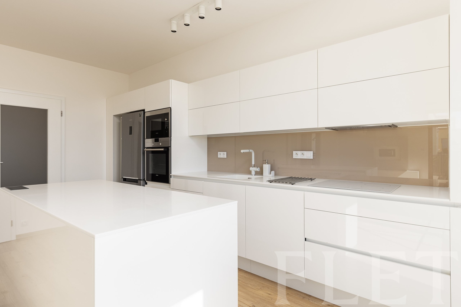 Sháníte nové rodinné bydlení a mezi vaše podmínky patří garážové stání, velký balkón a především prostorný byt v klidné lokalitě? V takovém případě vás jistě nadchne tento slunný byt 3+kk, který si budete moci zařídit dle svých představ. V hlavním pokoji vás jistě potěší plně vybavená kuchyň (lednice, trouba, myčka, digestoř, mikrovlnná trouba i vinotéka) a praktický ostrůvek s dalšími úložnými prostory a plochou pro vaření. Do zbylého prostoru se vám krásně vejde jídelní stůl i velká pohovka a televize. Dostanete se odtud na dva balkóny s výhledem do širokého okolí, jeden z nich je propojený s jednou z ložnic. V tomto pokoji najdete zabudovanou šatní skříň, ve druhém praktickou policovou skříň. V elegantní koupelně s vanou a toaletou je k dispozici také pračka, další toaleta je přístupná ze vstupní chodby bytu. Součástí je také praktická komora s poličkami, která vám spolu se sklepem zajistí dostatek úložného prostoru. Součástí je také již zmíněné garážové stání přímo v domě.