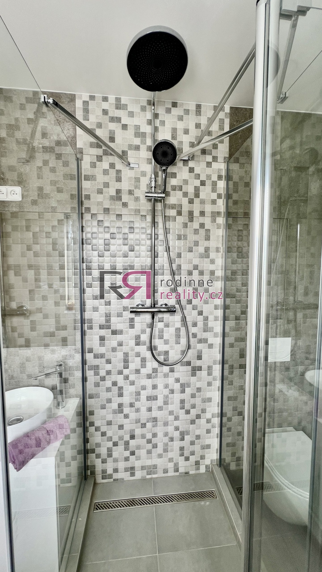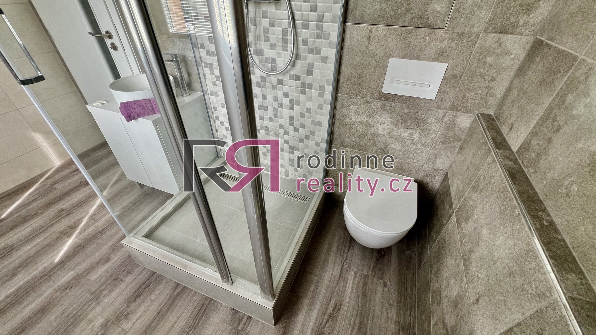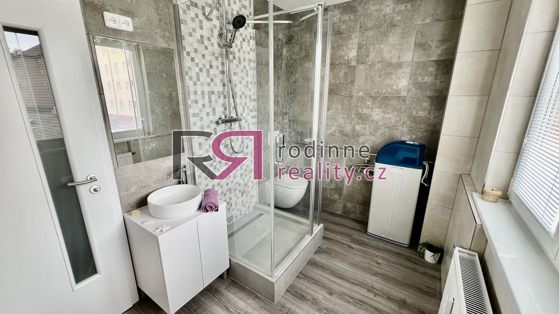 koupelnu se sprchovým koutem, toaletou a úpravnou vody,