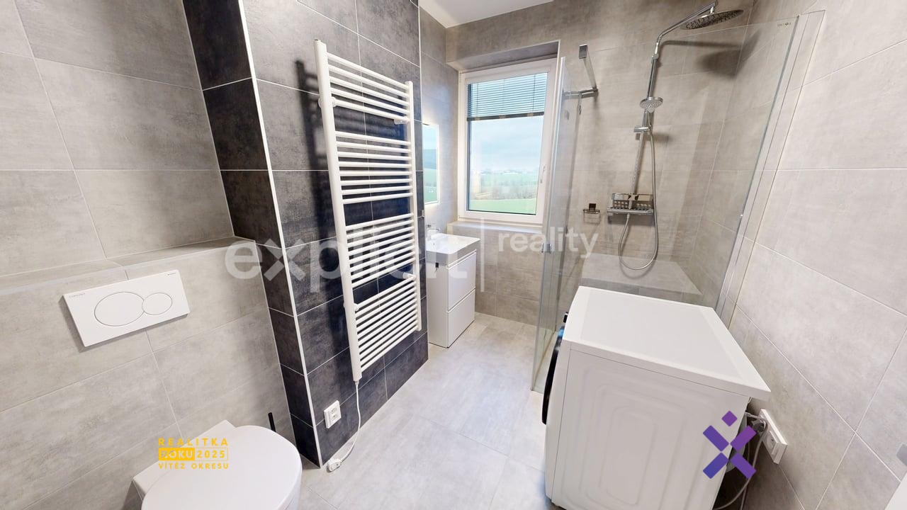 Koupelna je vybavena sprchovým koutem umyvadlem a skříňkou na osobní kosmetiku, topným tělesem a závěsným WC. Byt je vytápěn podlahovým vytápěním, které Vám zajistí velmi příjemný pobyt v každé místnosti. Okna jsou vybaveny žaluziemi i sítěmi proti hmyzu.