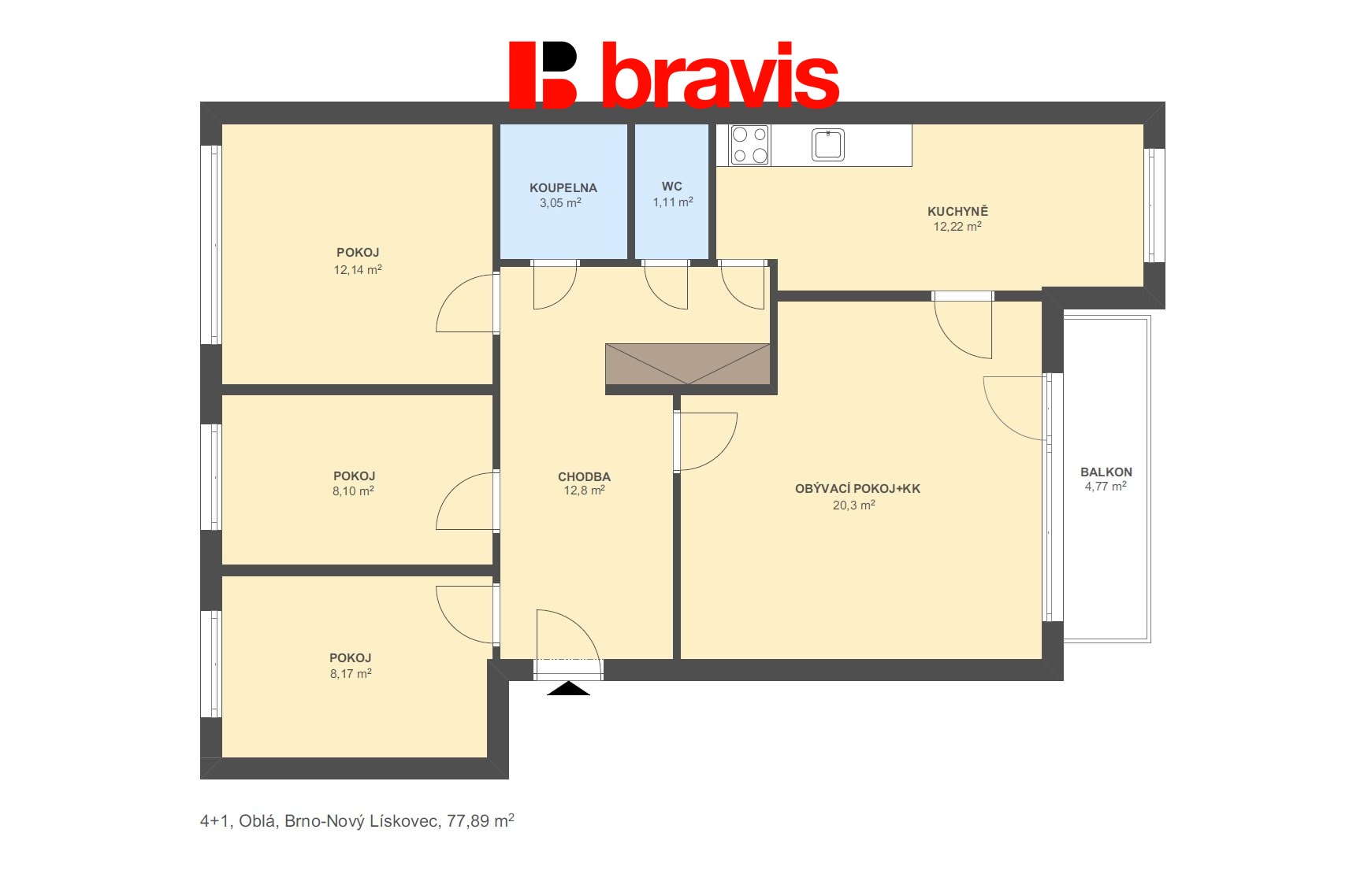 Ve výhradním zastoupení majitele nabízíme k pronájmu světlý byt 4+1 na ulici Oblá v městské části Brno – Nový Lískovec.