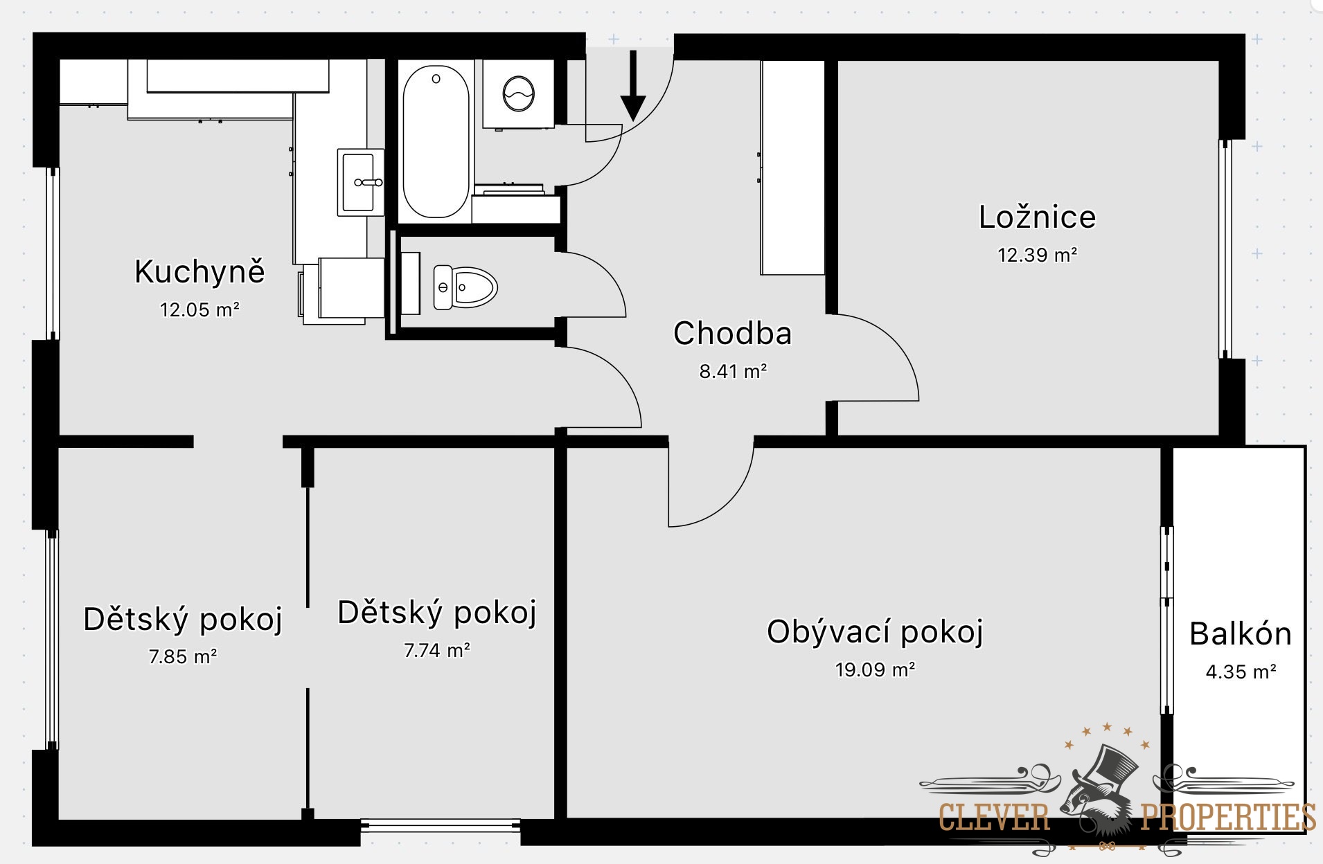 Již při vstupu Vás zaujme prostorná chodba, ze které vstupujete na levé straně do dvou samostatných pokojů. Na pravé straně se nachází koupelna a WC. Dále malou chodbičkou projdete do prostorné kuchyně, na kterou navazují další dva pokoje, které jsou od sebe odděleny stylovými dveřmi s pojezdem.