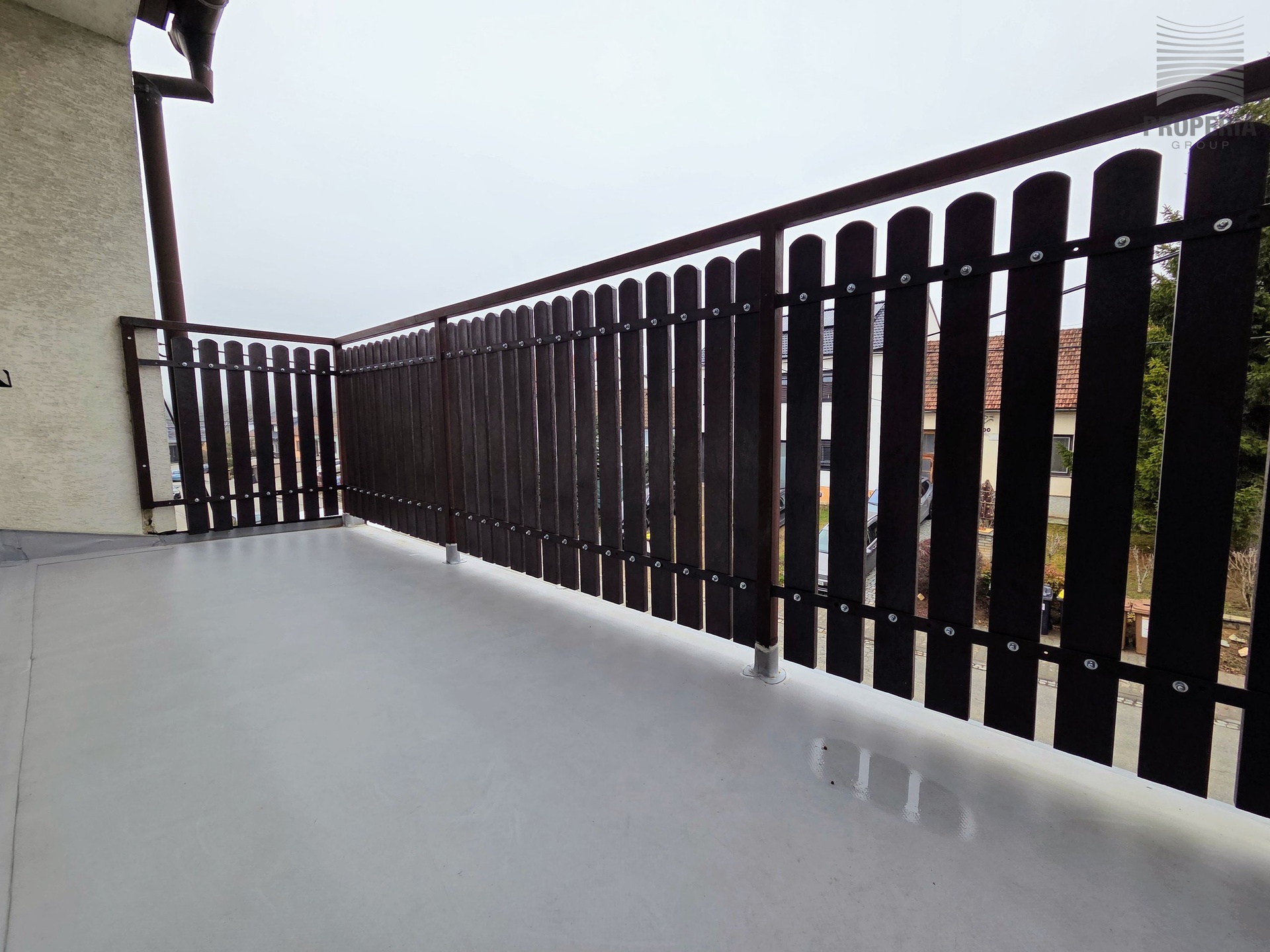 Dispozice patra nabízí příjemně řešené místnosti: obytný pokoj 13 m² se vstupem na terasu 6 m², další pokoj 9 m², prostorný obývací pokoj o velikosti 34 m², ložnici 13 m² s přístupem na velkorysou terasu 17 m², kuchyni 12 m² rovněž s výstupem ven, chodbu 12 m², koupelnu o rozloze 5 m² a samostatné WC.