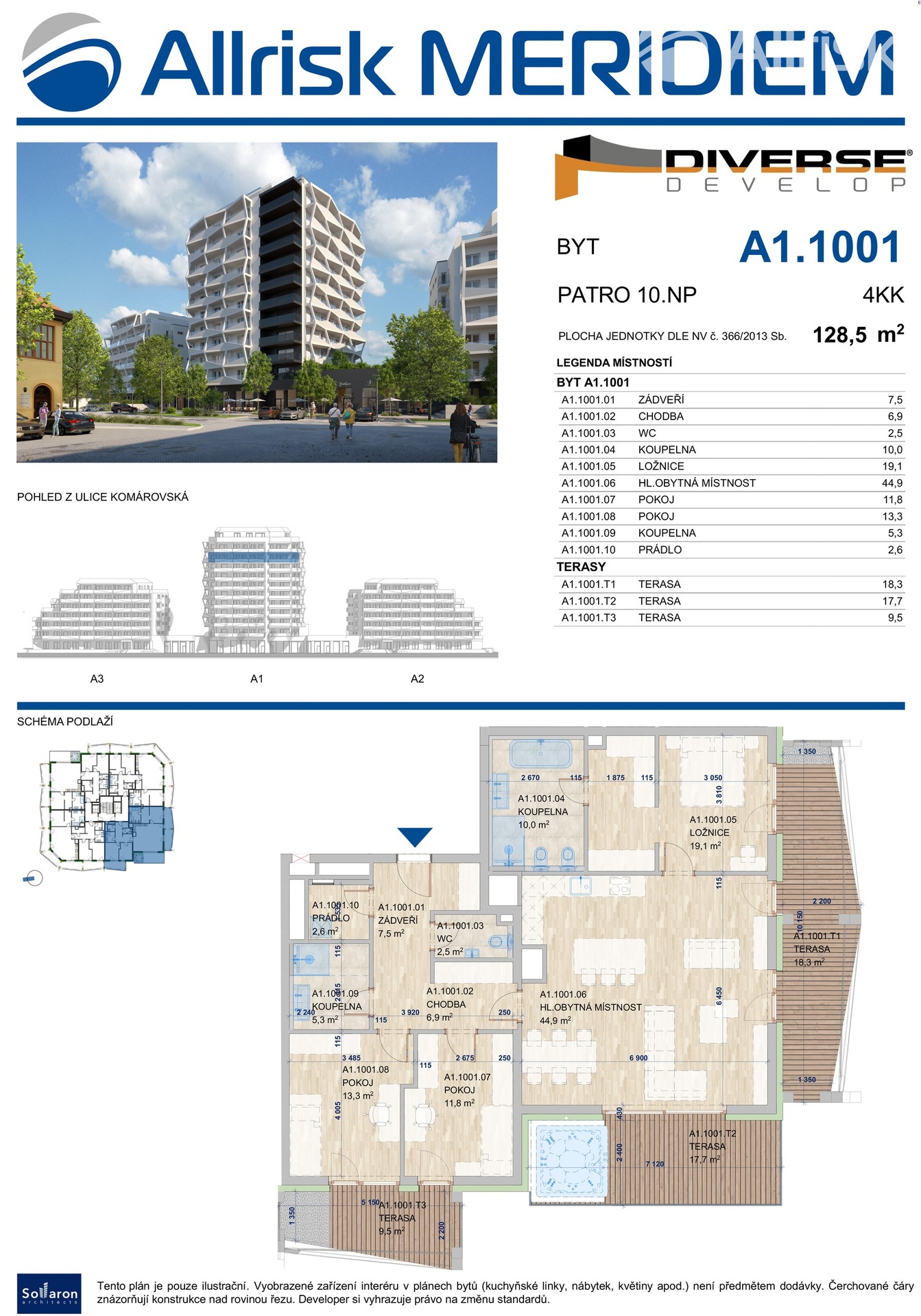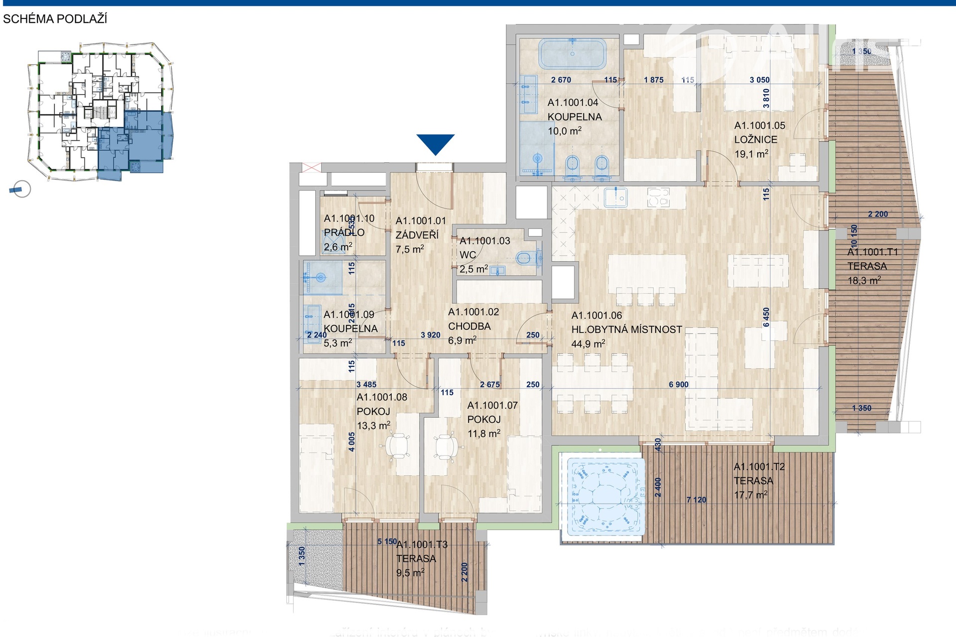 UŽITNÁ PLOCHA: 169,4 m² (včetně tří teras o celkové ploše 45,4 m²)