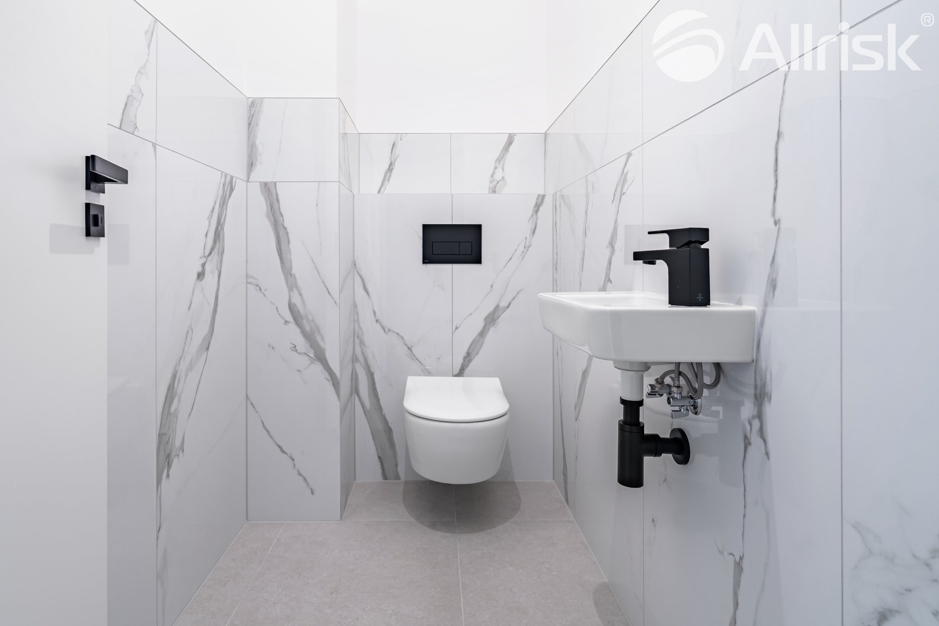 - koupelny jsou vybaveny kvalitní sanitární technikou značky Villeroy & Boch a designovými bateriemi Hansgrohe, které zaručují vysoký komfort a nadčasový vzhled.