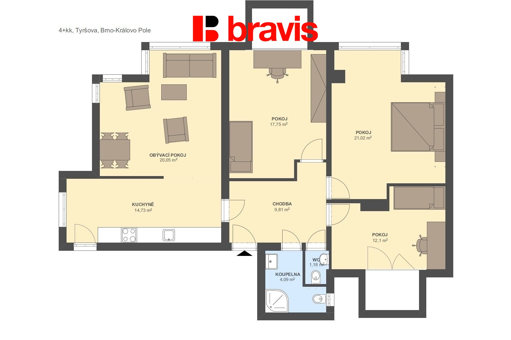 Ve výhradním zastoupení majitele nabízíme k pronájmu prostorný byt o velikosti 4+kk v žádané lokalitě Brno - Královo Pole na ul. Tyršova.